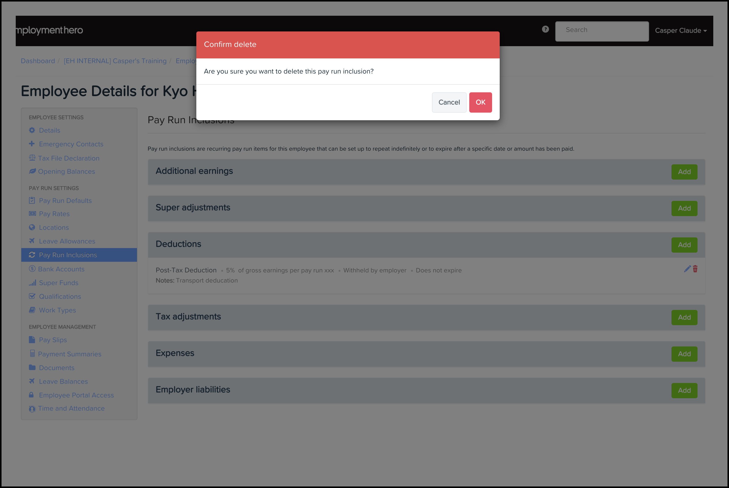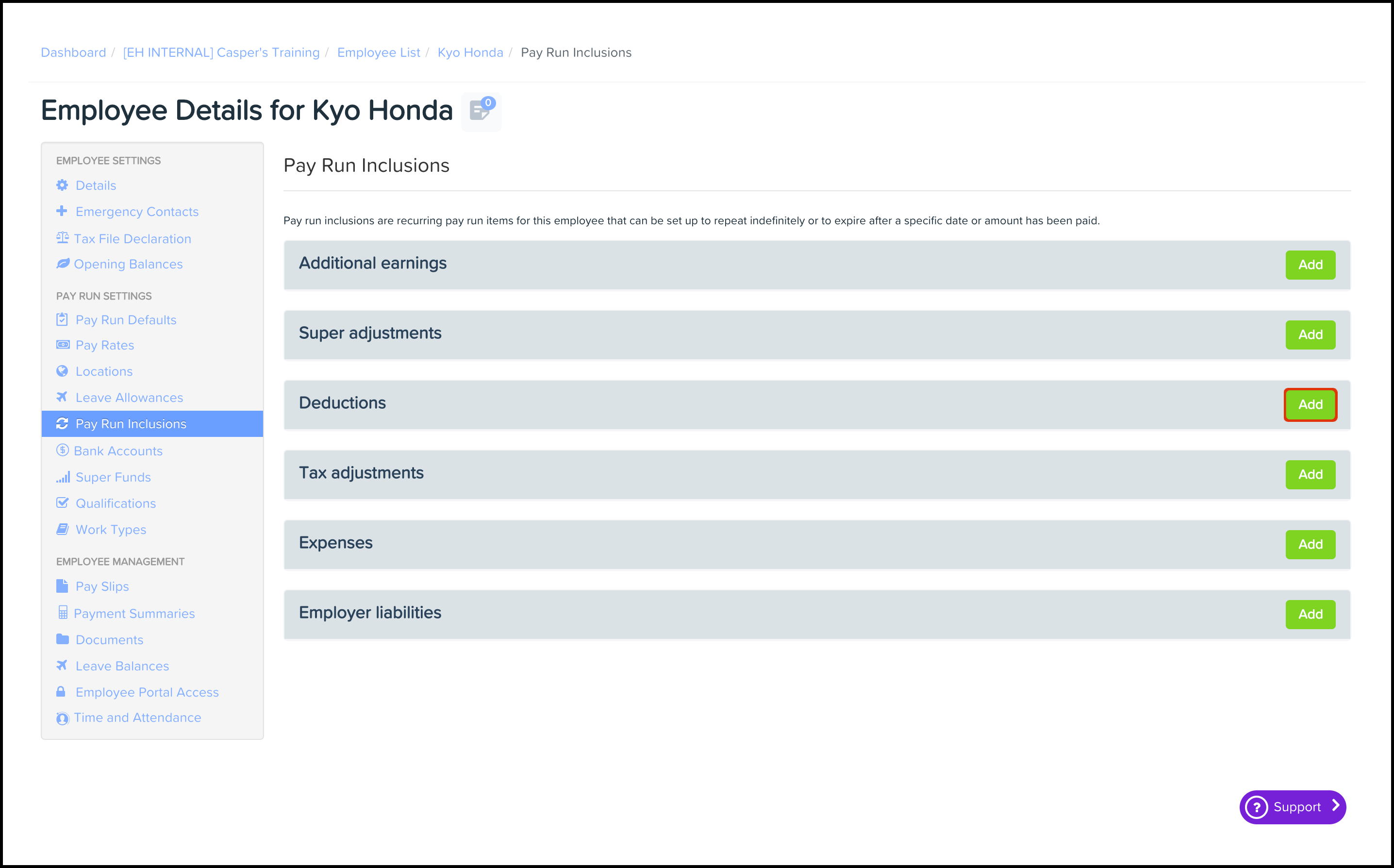 The Pay Run Inclusions Deduction feature allows you to set up an automated employee deduction where you can choose the category, the date the inclusion starts and ends on, and the amount. You can also use this feature to edit any data entered and delete a record that is no longer required.