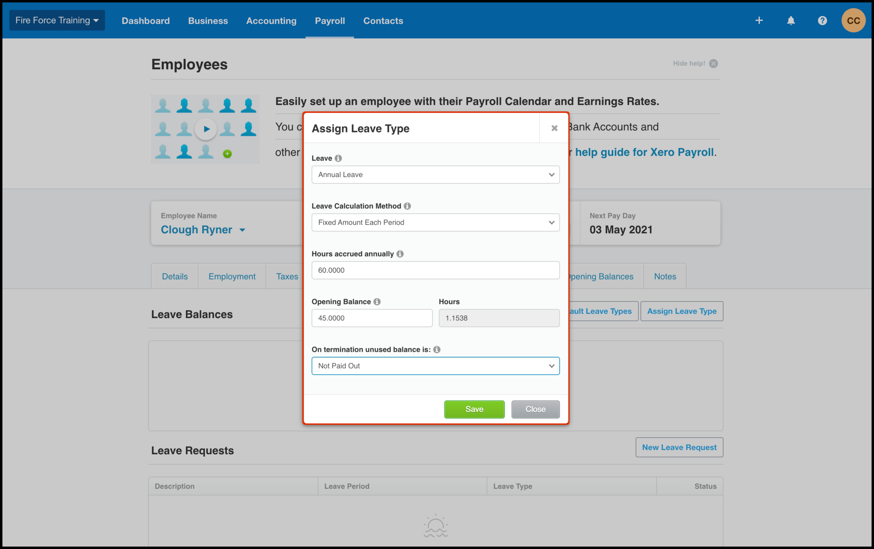 For example, if you are trying to give an employee compassionate leave and compassionate leave exists as a leave type in HR classic but not in Xero, it will not be synced to Xero and could cause issues in payslips.