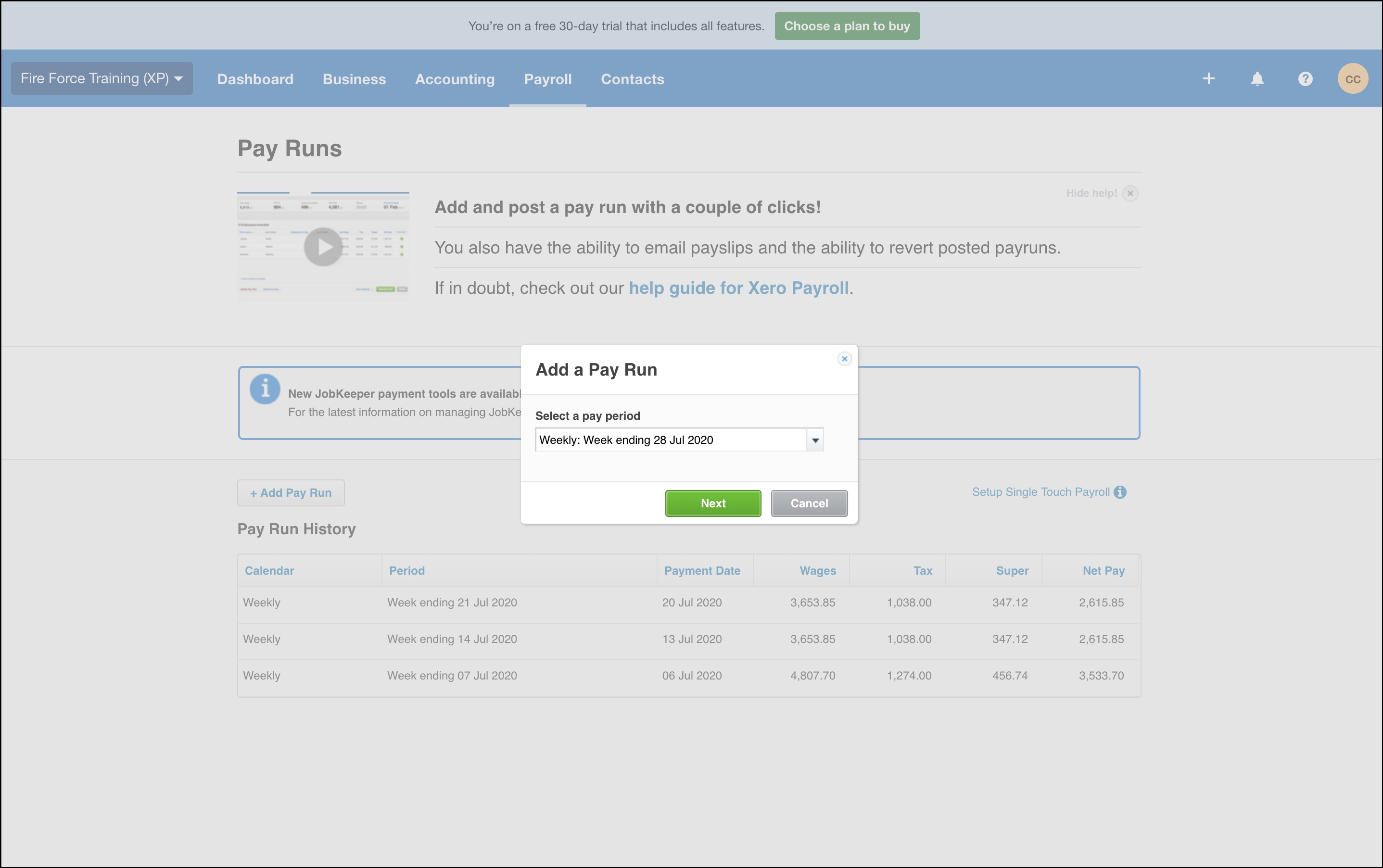- Click Add Pay Run.