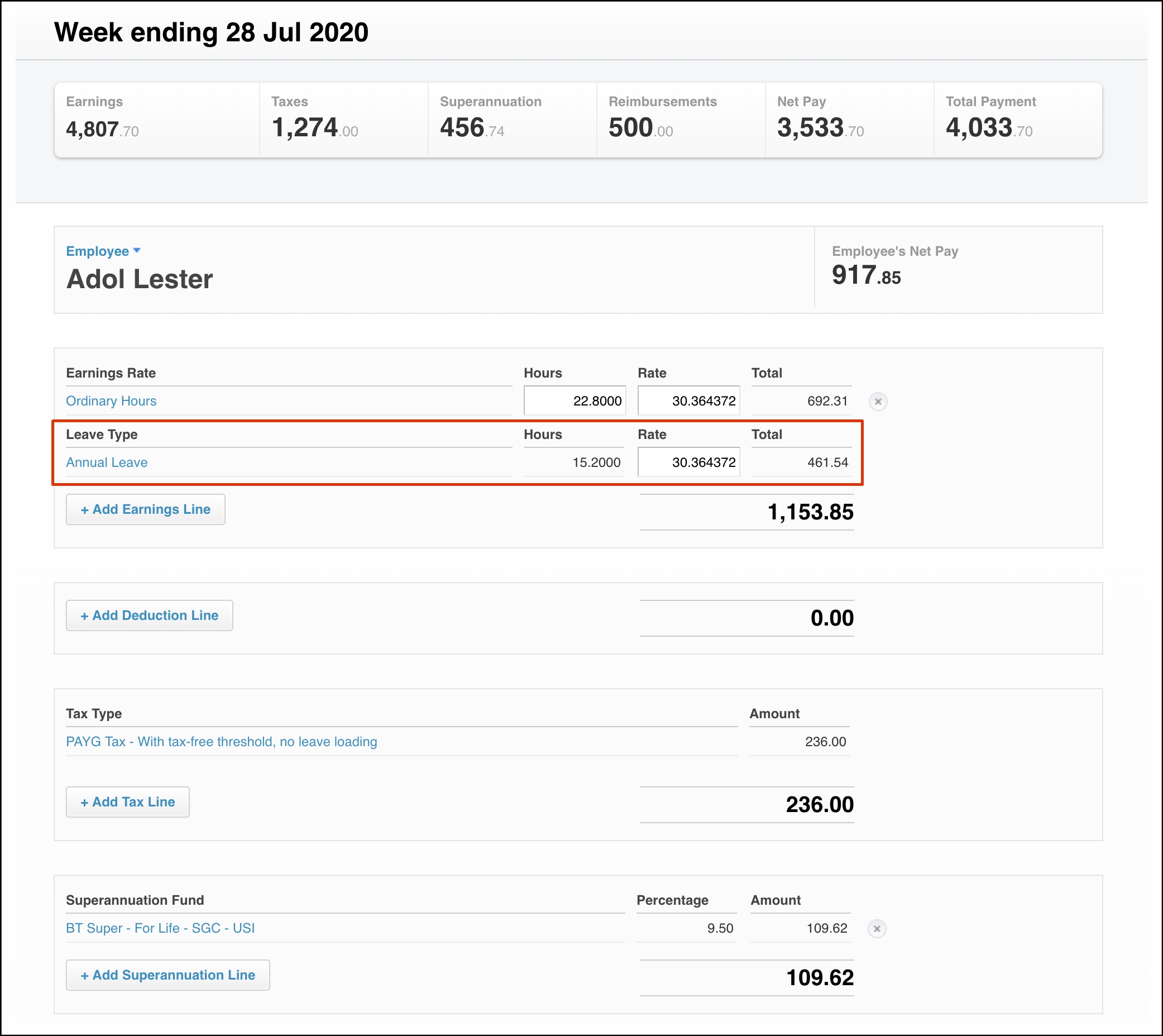You will see the employees approved leave applied in the Earnings Rate section.