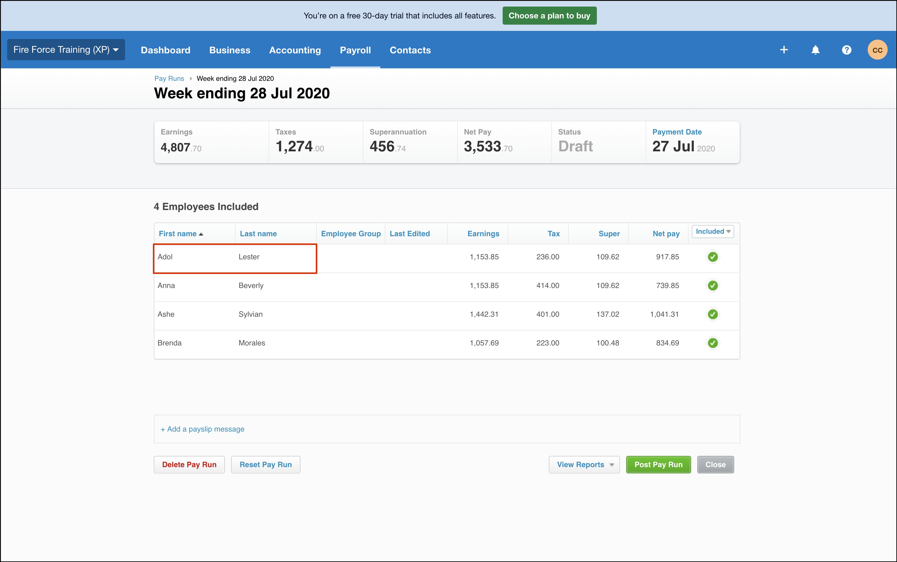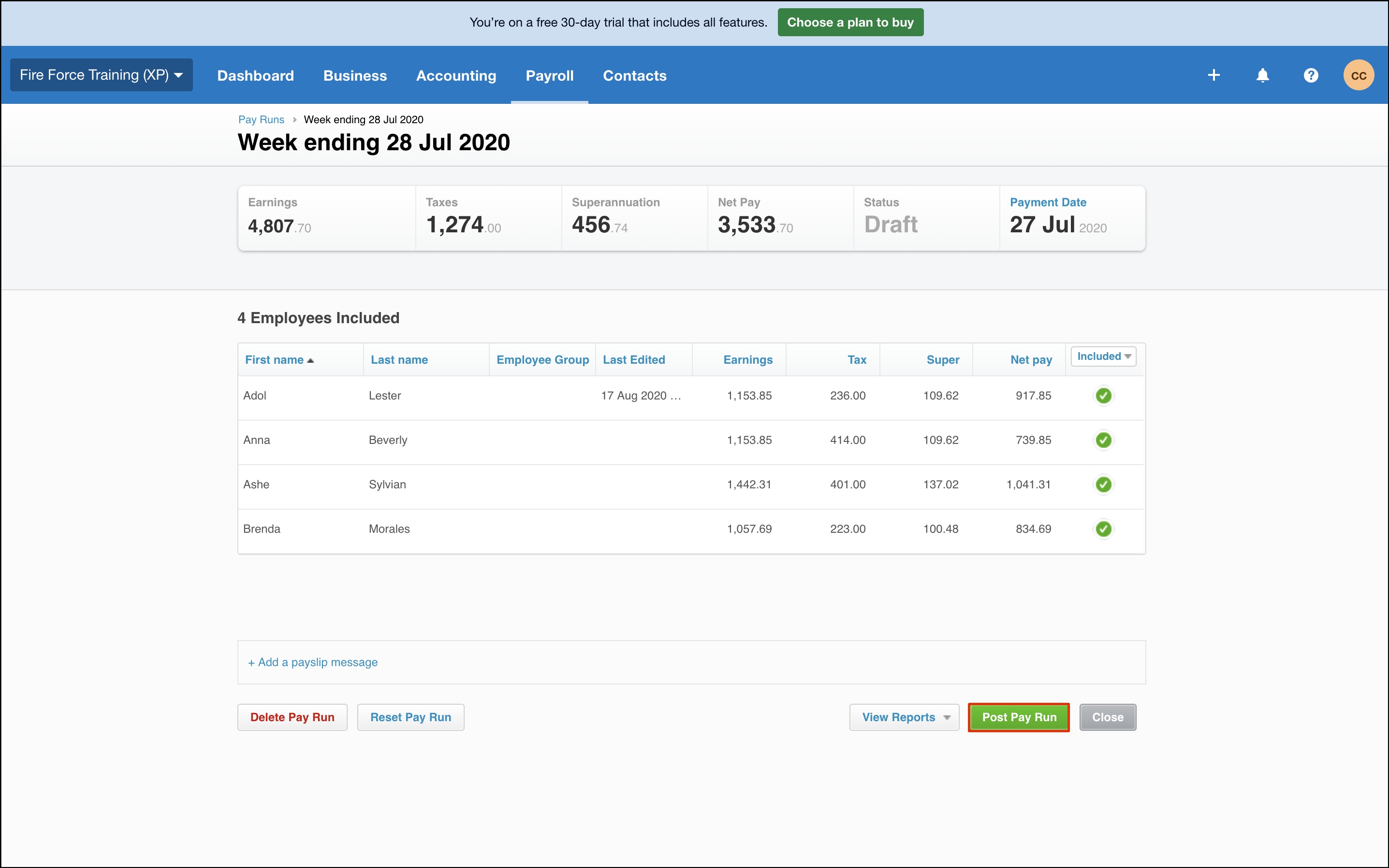 - Click Post Pay Run.