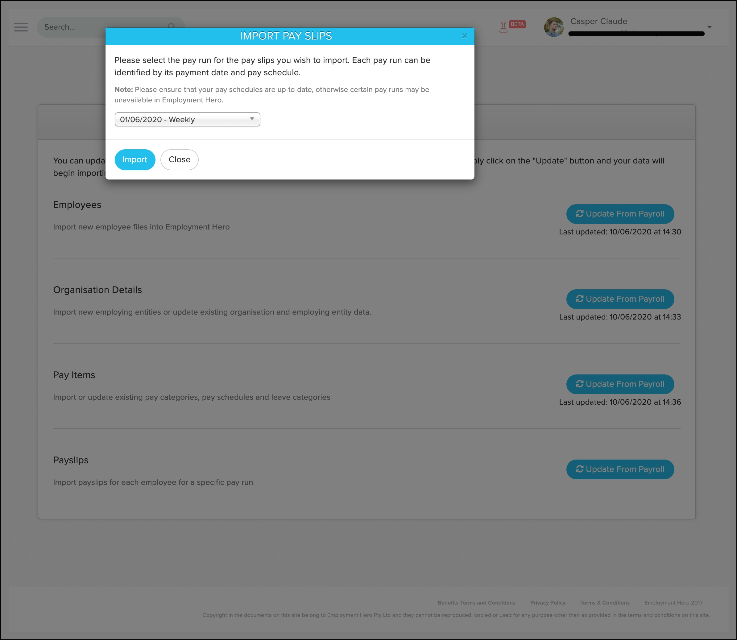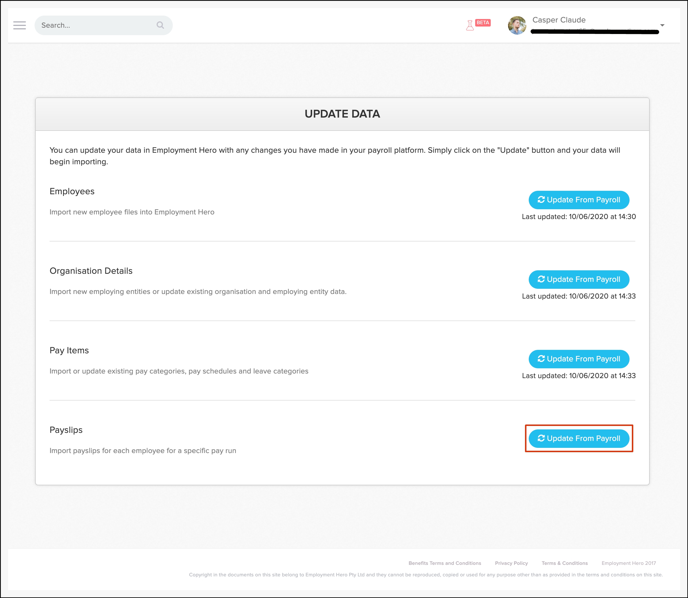 - Click Update from Payroll.