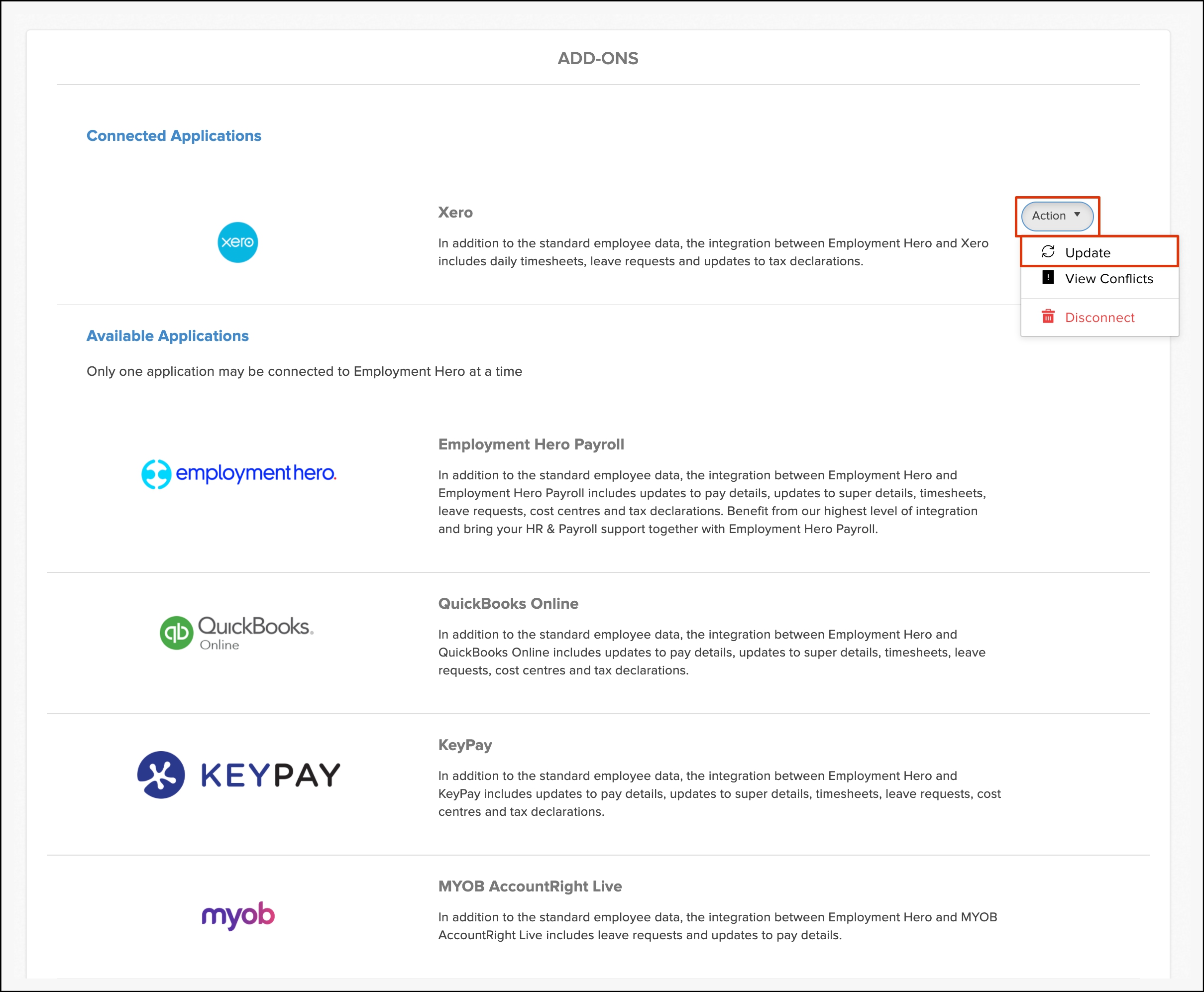 - Process the leave request in a Xero pay run and then re-sync Xero with your HR classic platform.