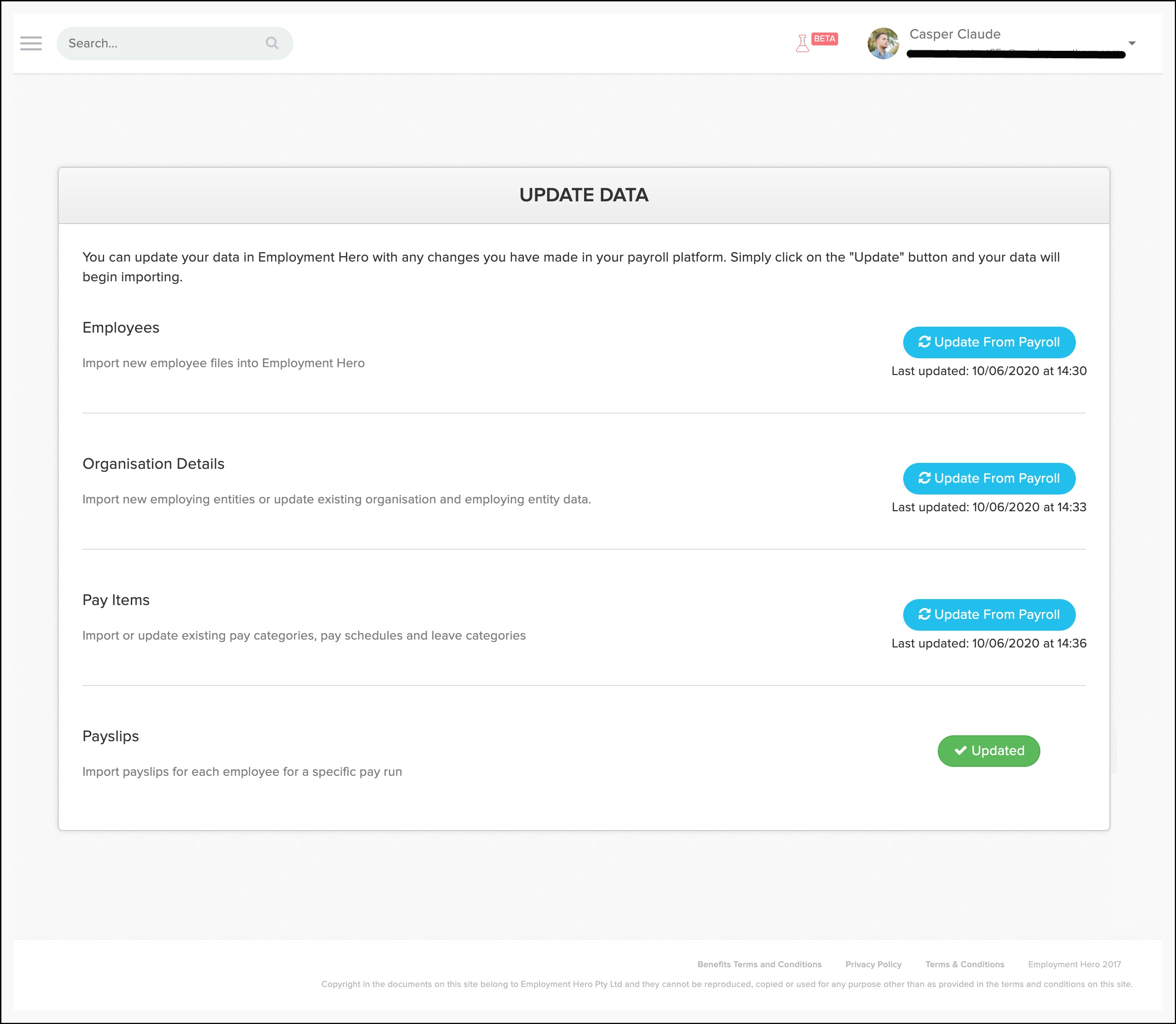 The Payslips section will now show a green Updated button and means Employment Hero has successfully imported your selected Xero pay slip.