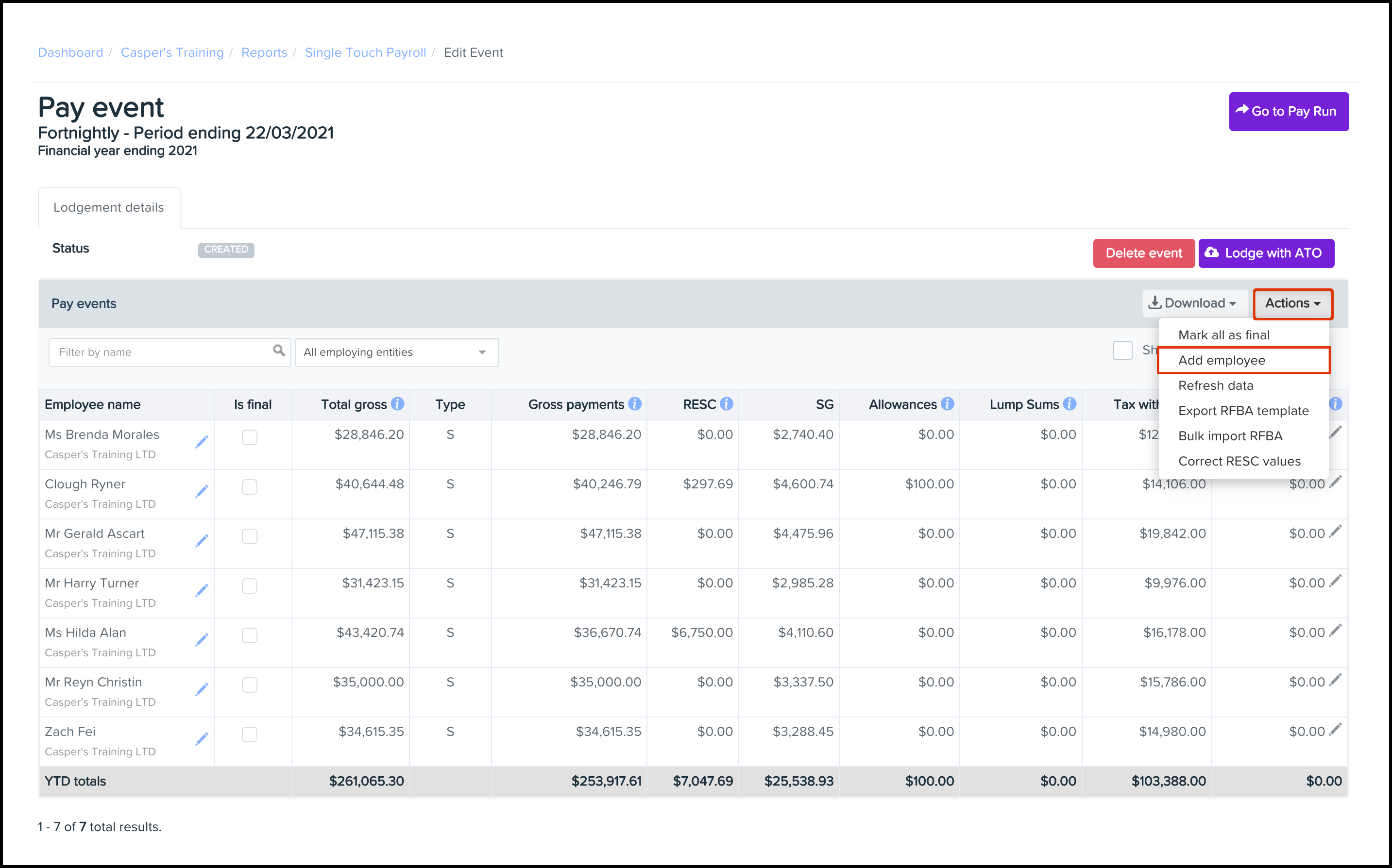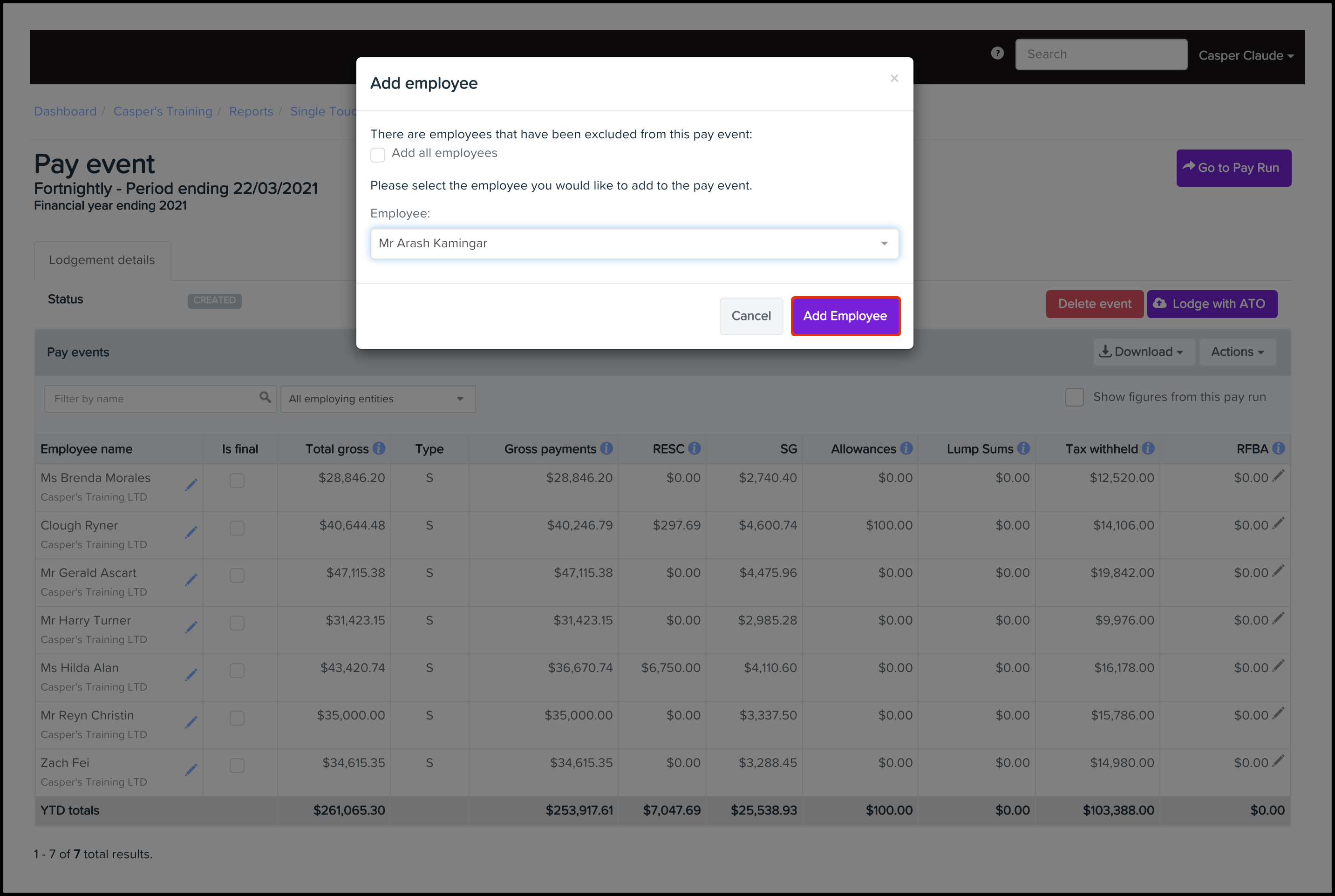 You can use the Add Employee feature within the Update Event module to add an employee to your update event. You will need to undertake this process via your Employment Hero Payroll classic platform.