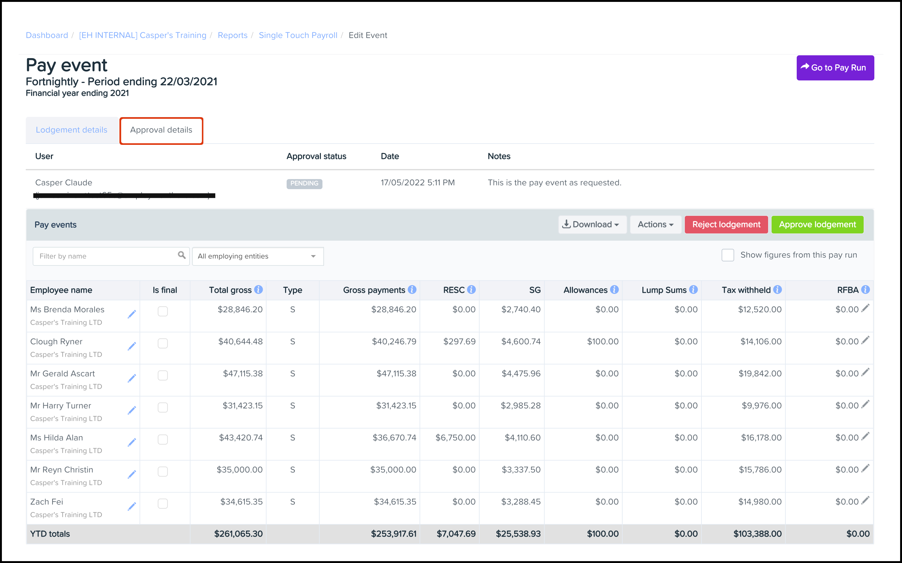 You will now see your pay event approver details on your screen.