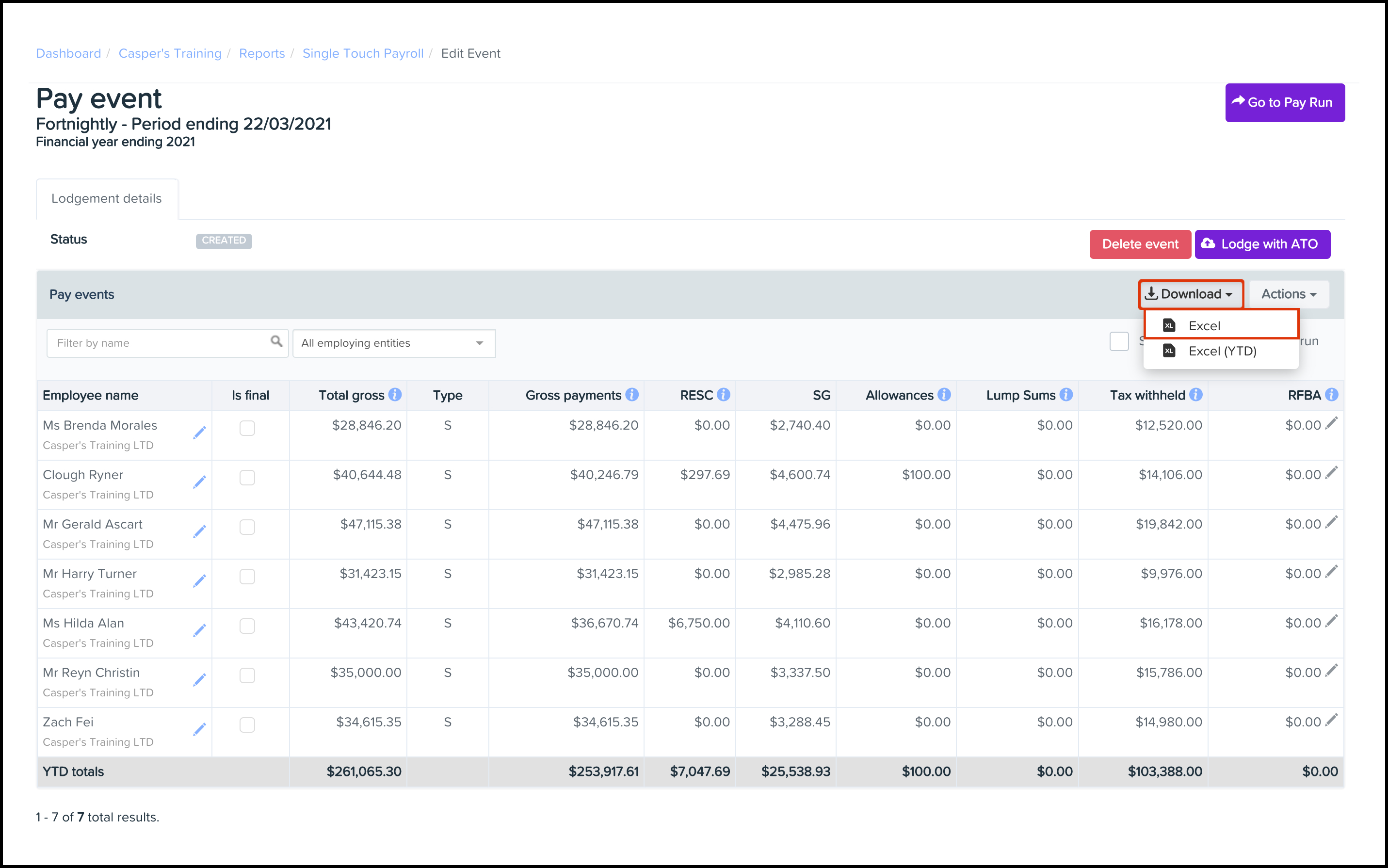 This data is available as an Excel file that covers either the current pay event or your year to date (YTD) figures, allowing you to apply your own filters when analysing your data in Excel. Before you can download your data, you will need to create a pay event. To read further details on how to create a pay event, refer to the following guide.