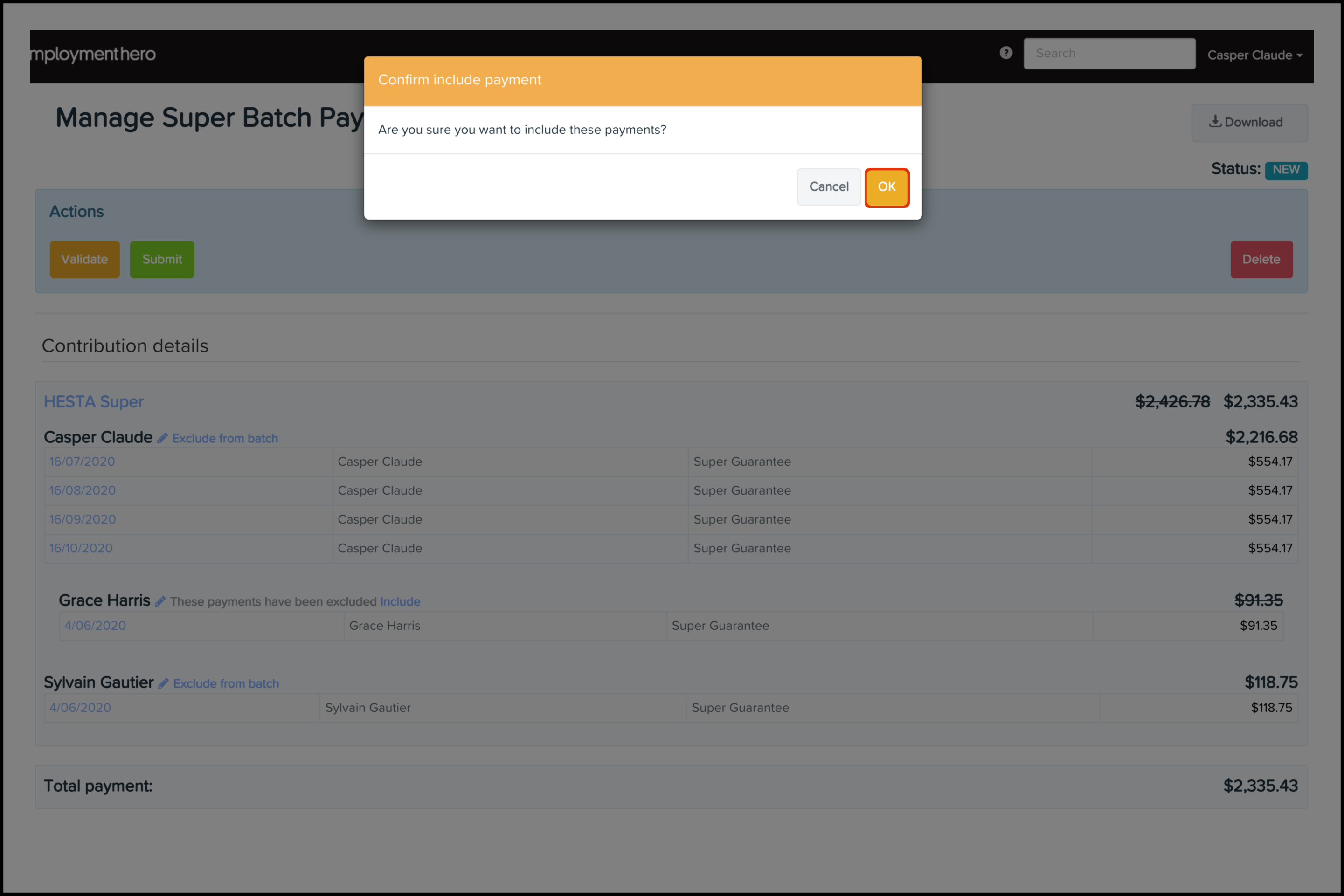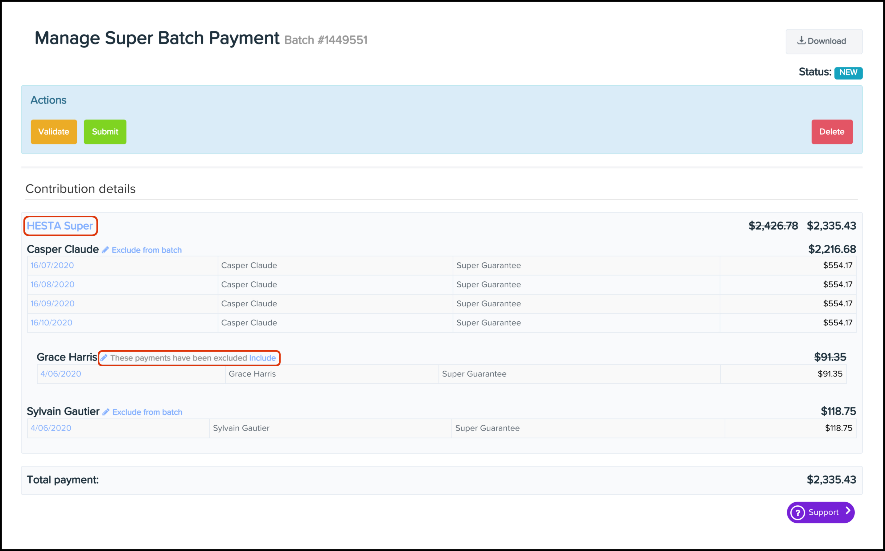 Sometimes an employee has not provided enough details yet to process their super batch payment, or their details need changing as they are incorrect. In these cases, their payment needs excluding from the super batch payment until their details are correct.