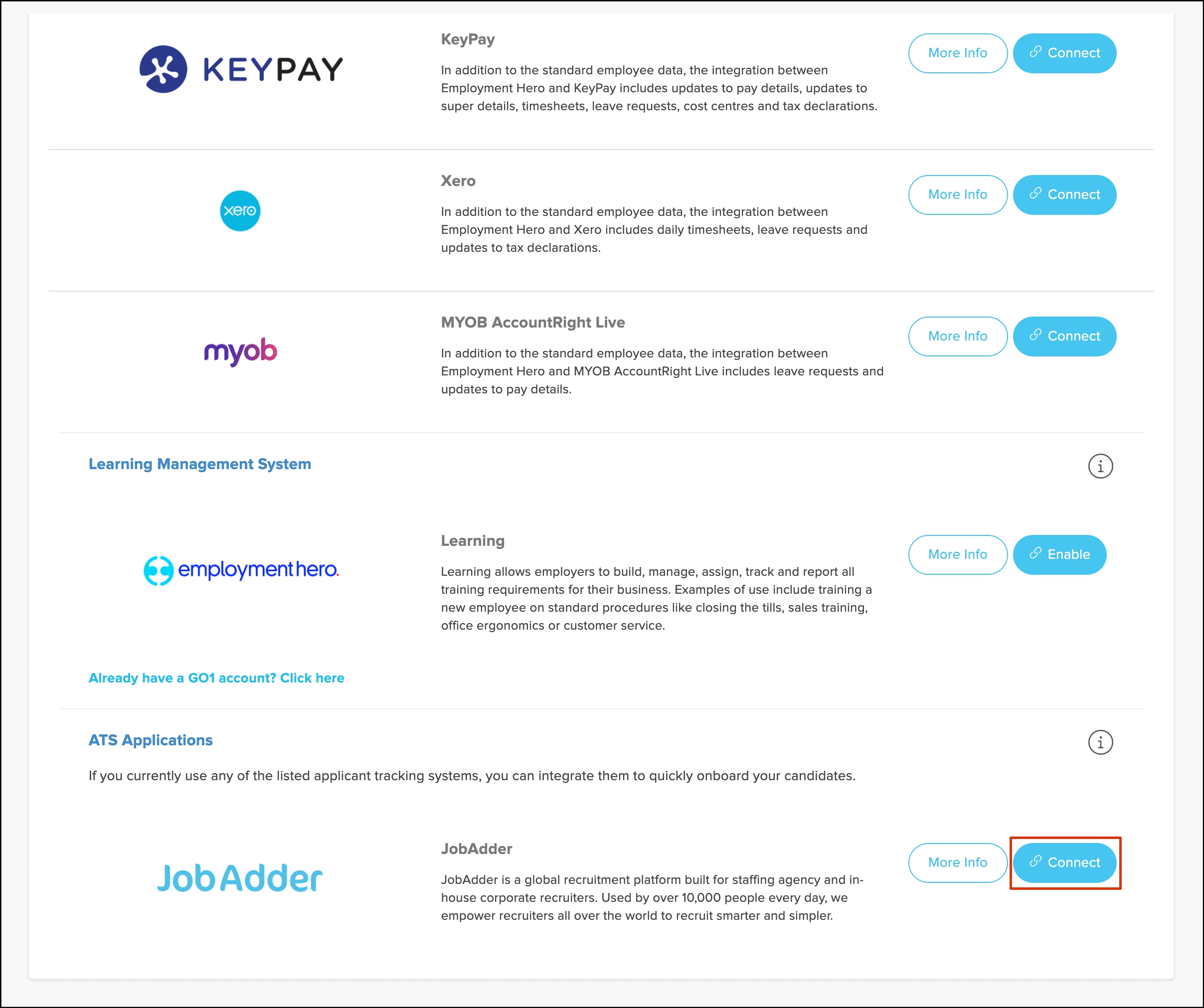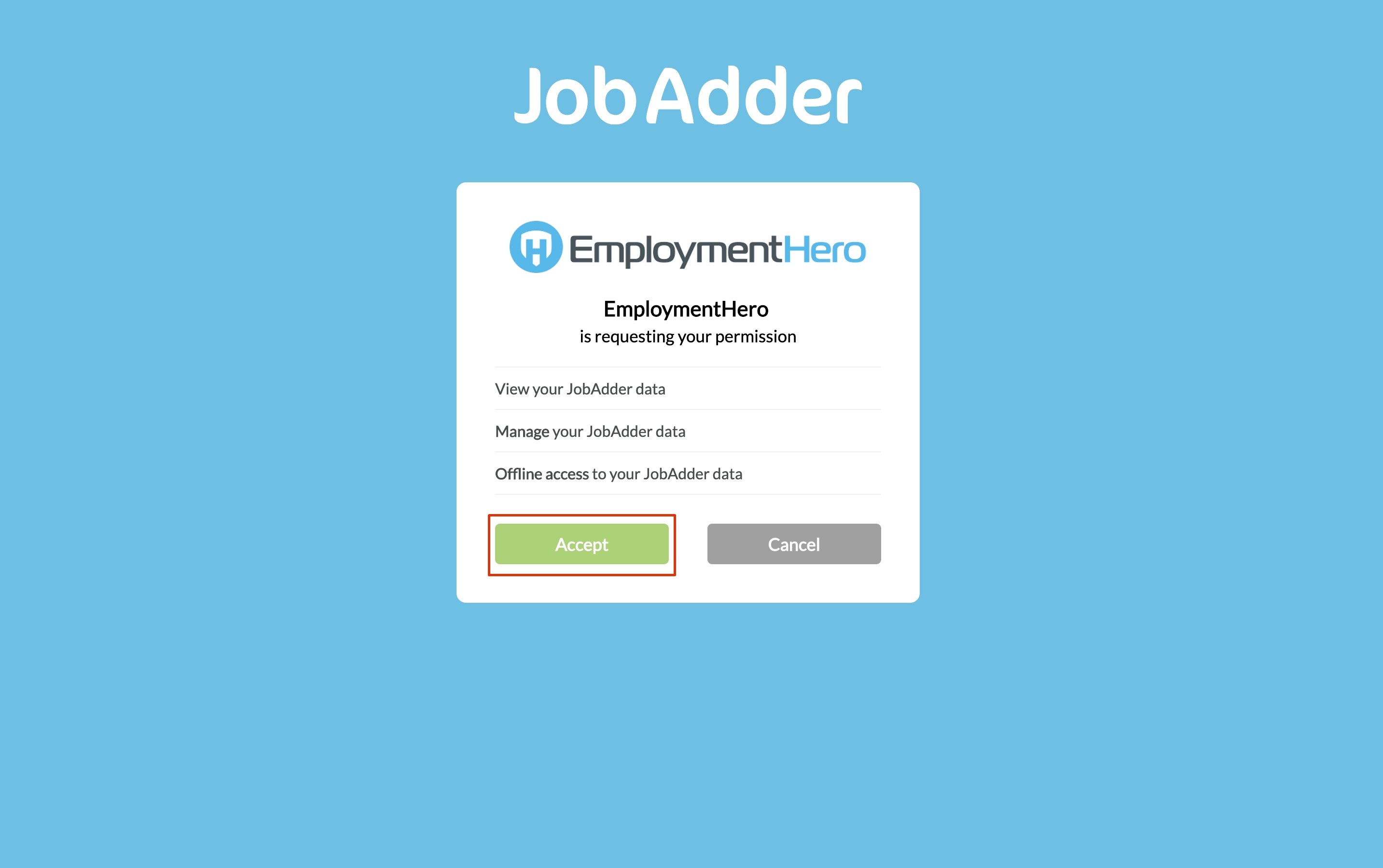 Once you click the Connect button, Employment Hero will redirect to the JobAdder platform.