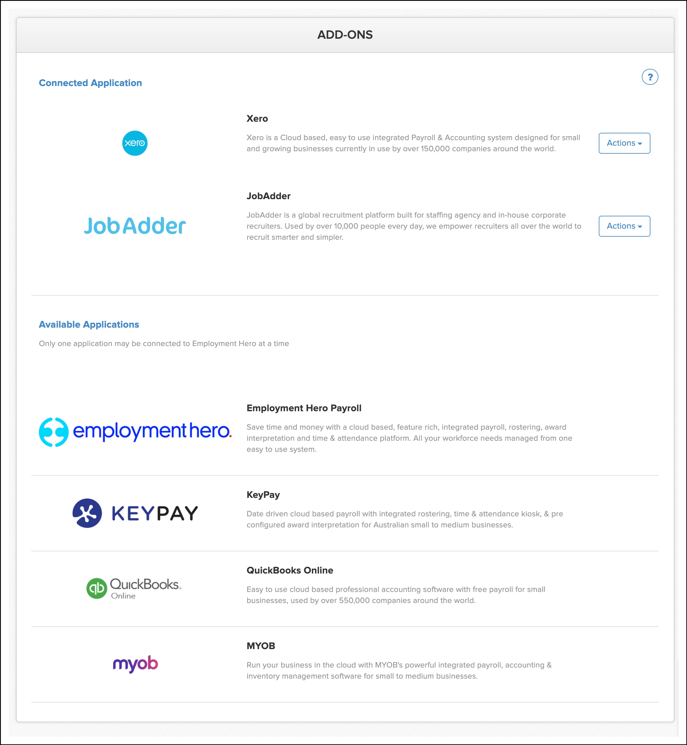 | JobAdder | Employment Hero onboarding | Notes |