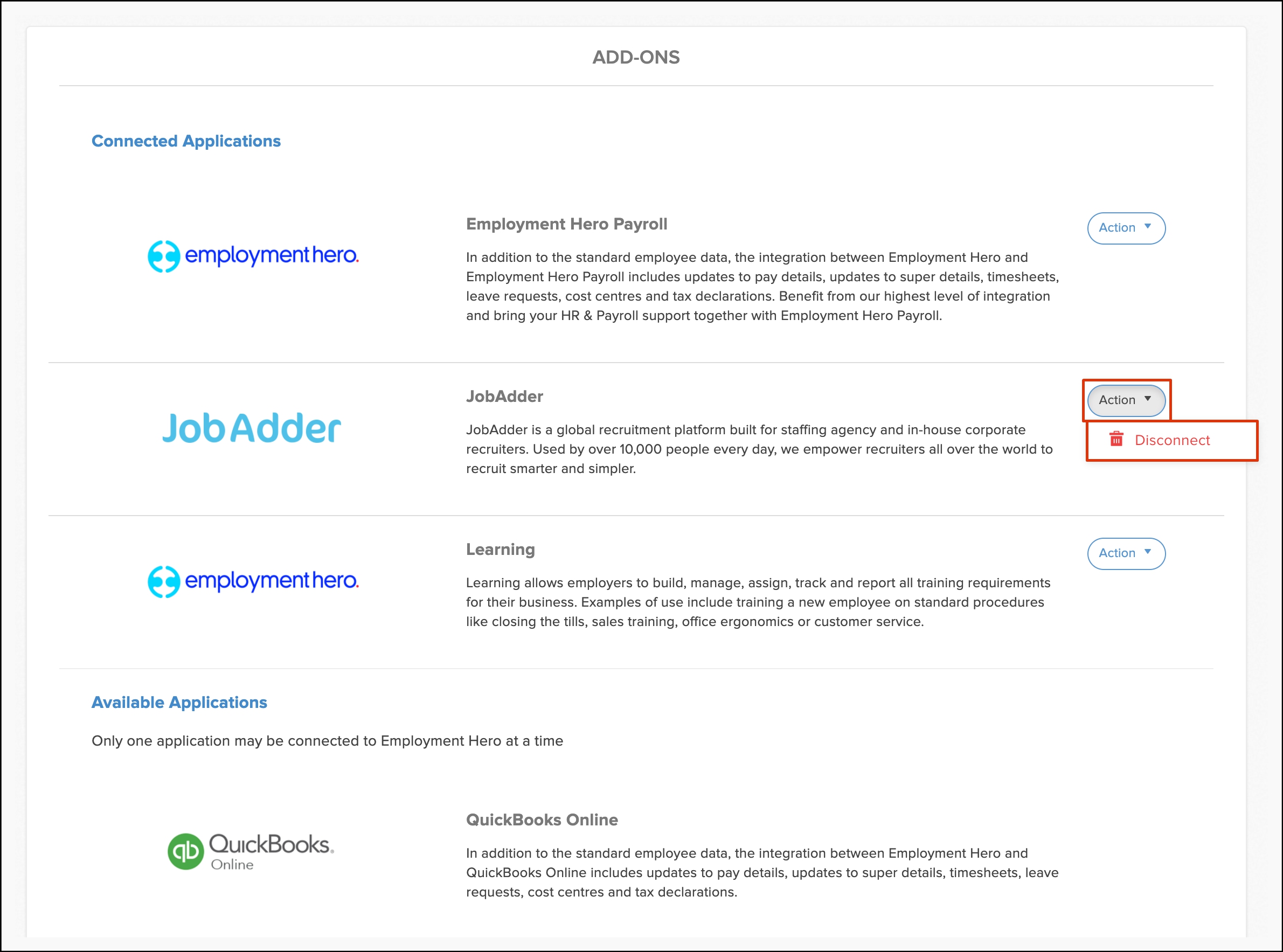 Employment Hero's Platform comes with native JobAdder integration. Native integration means that in a few minutes, Employment Hero's Platform directly syncs information with your JobAdder platform.