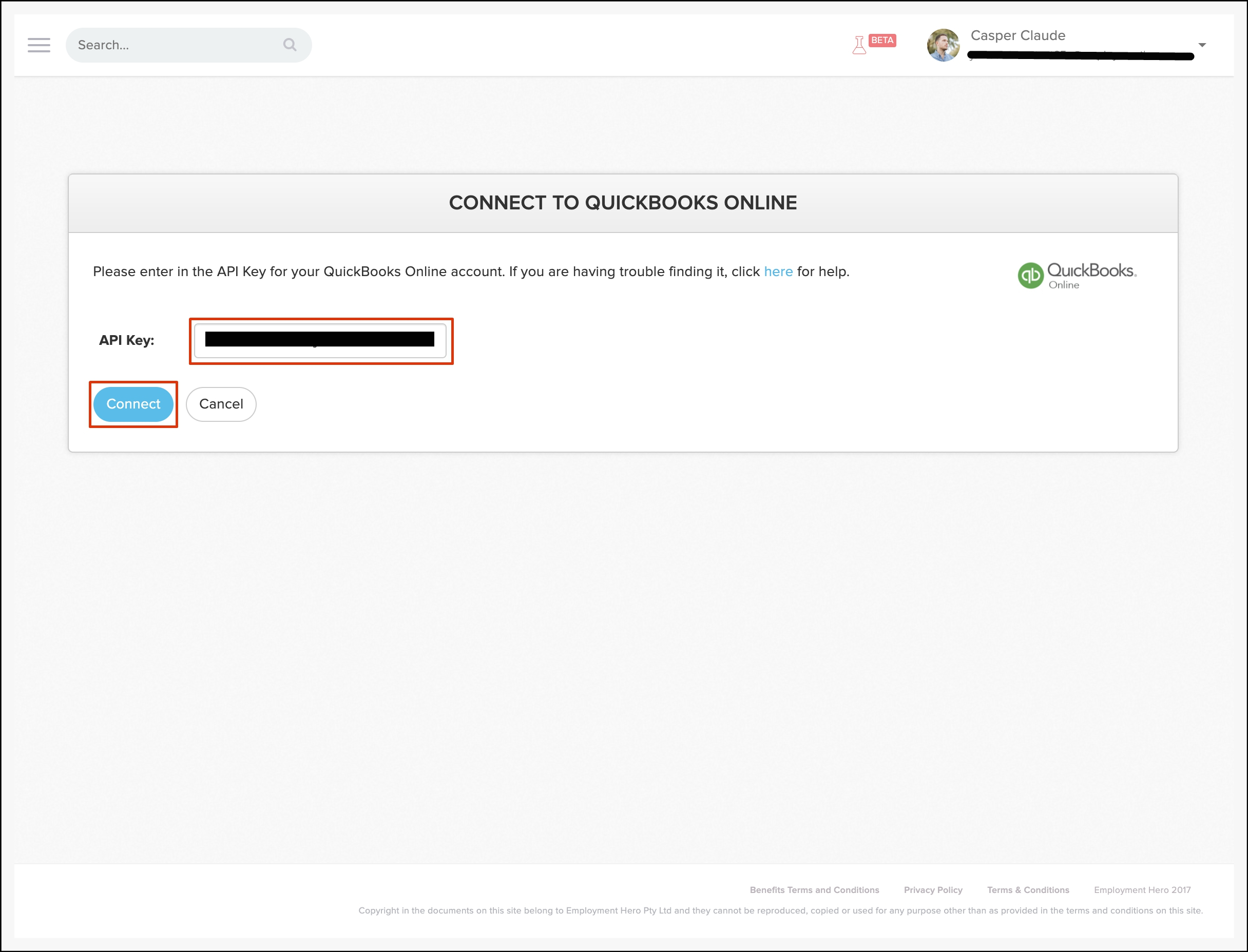 You will see your QuickBooks Online API key in the bottom left-hand side of your screen.