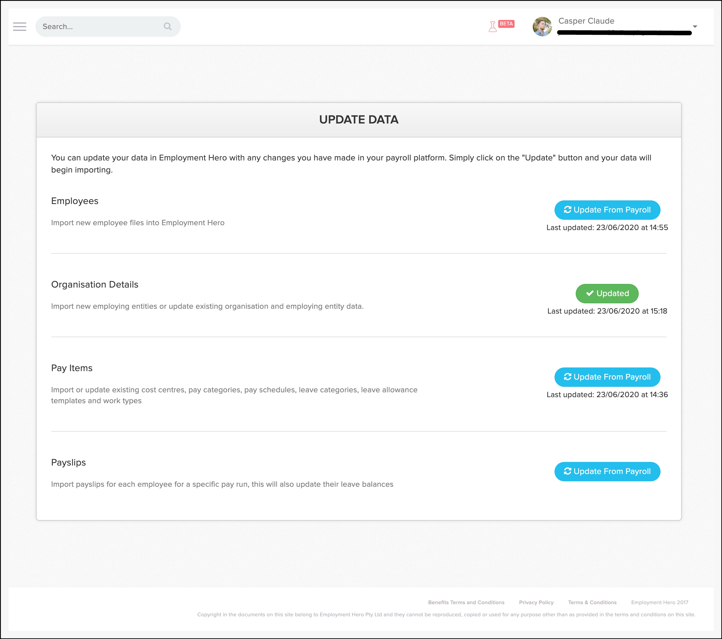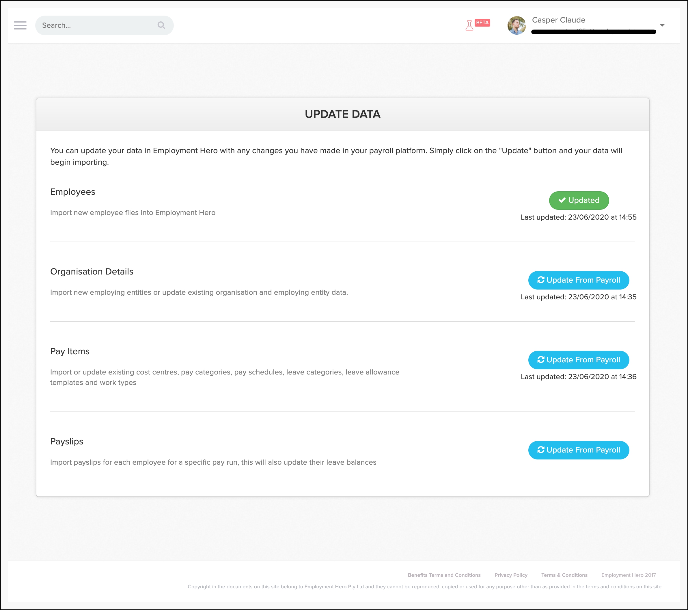 The Employees section will now show a green Updated button and means Employment Hero has successfully imported your employees from your QuickBooks Online platform.