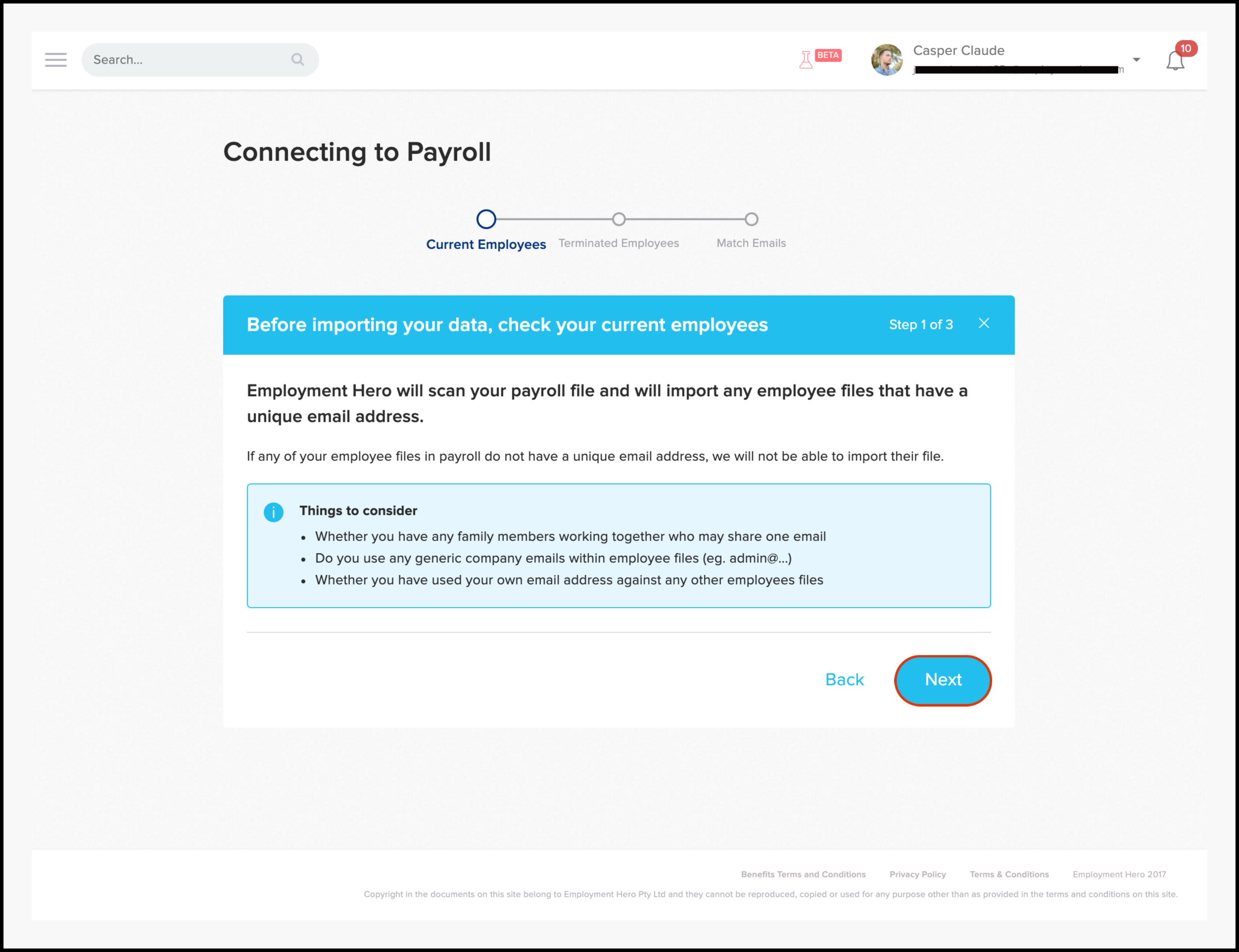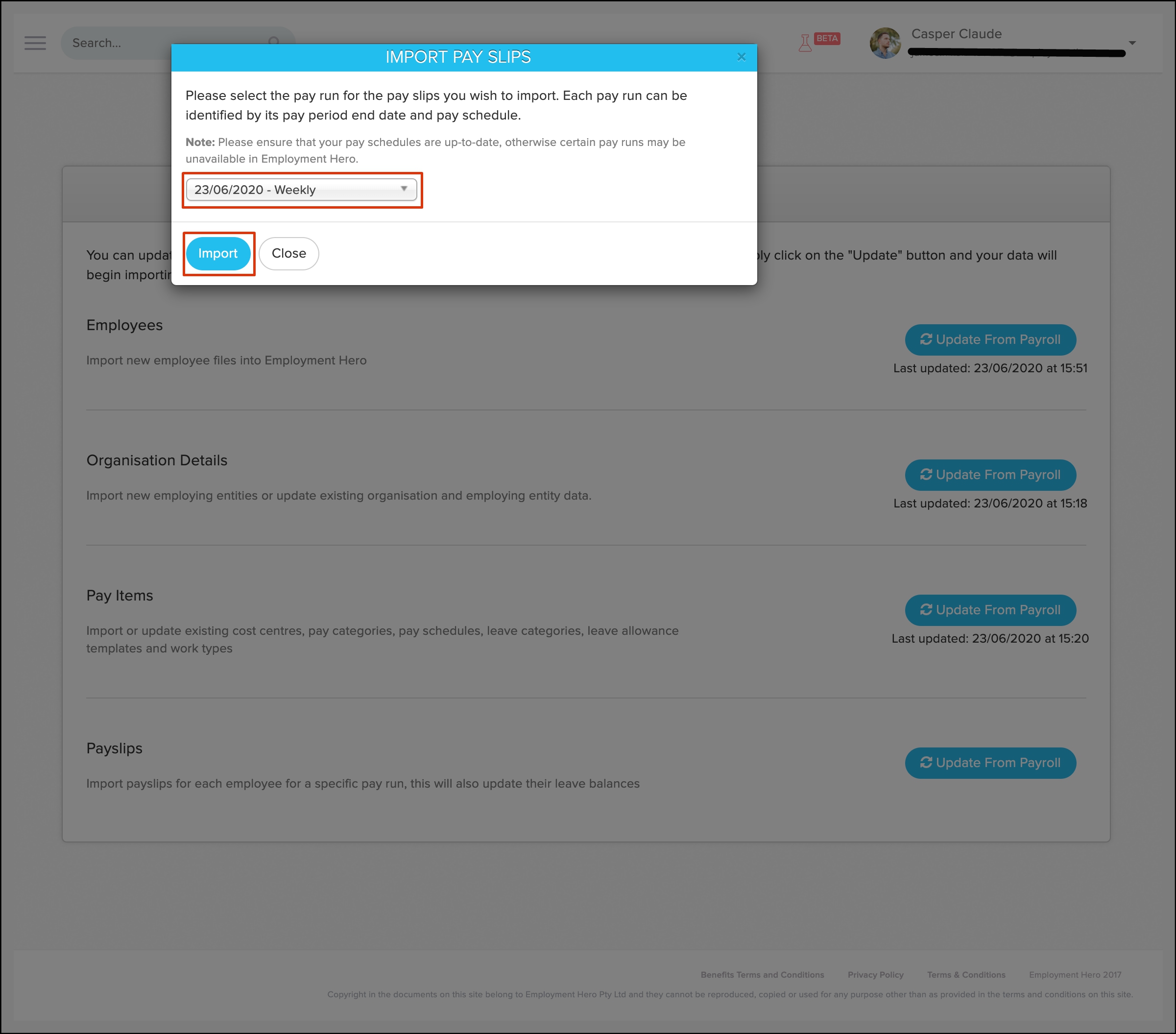 Employment Hero will check once a day for eligible payslips and requires three conditions to import pay slips automatically from your QuickBooks Online platform, and they are: