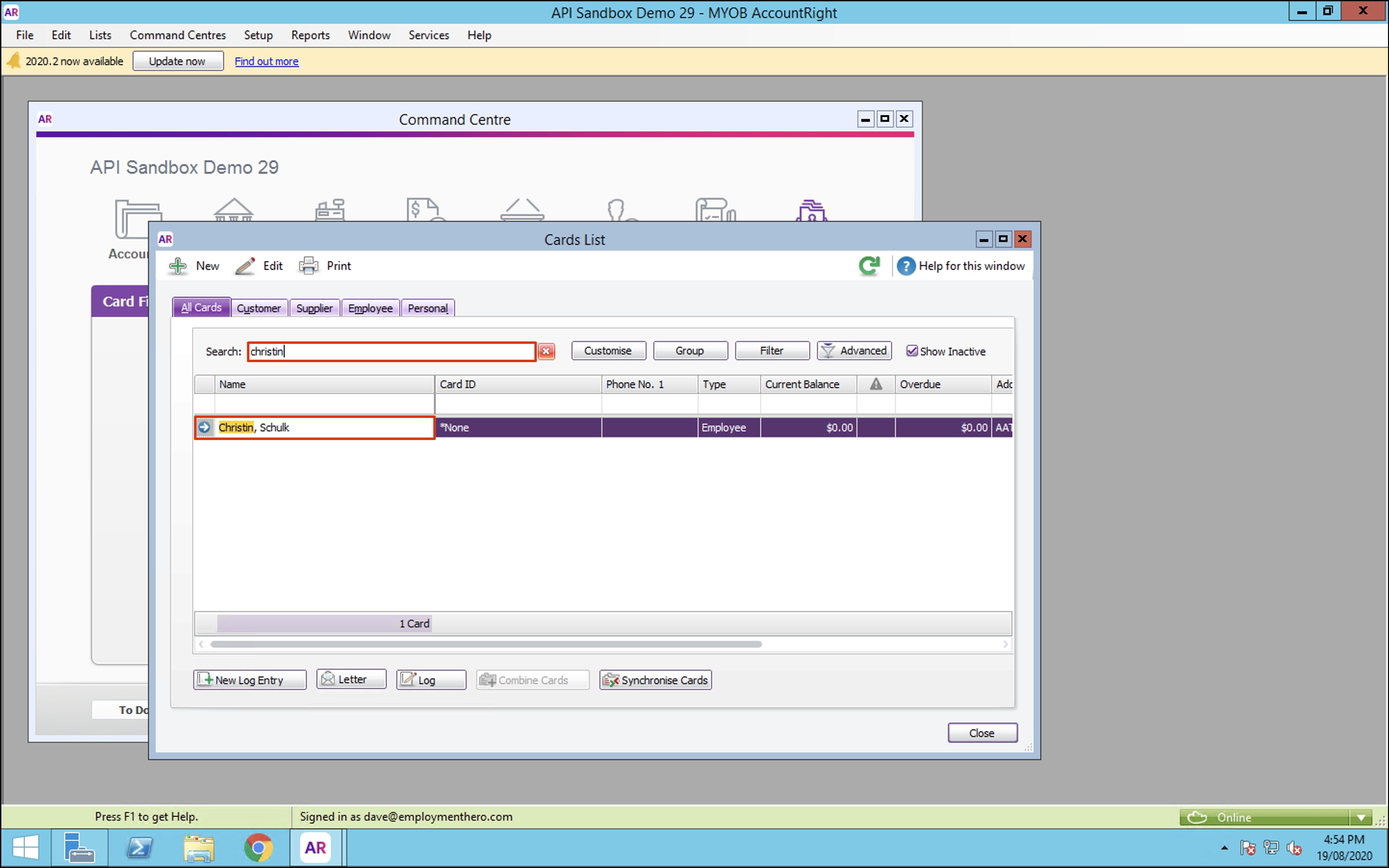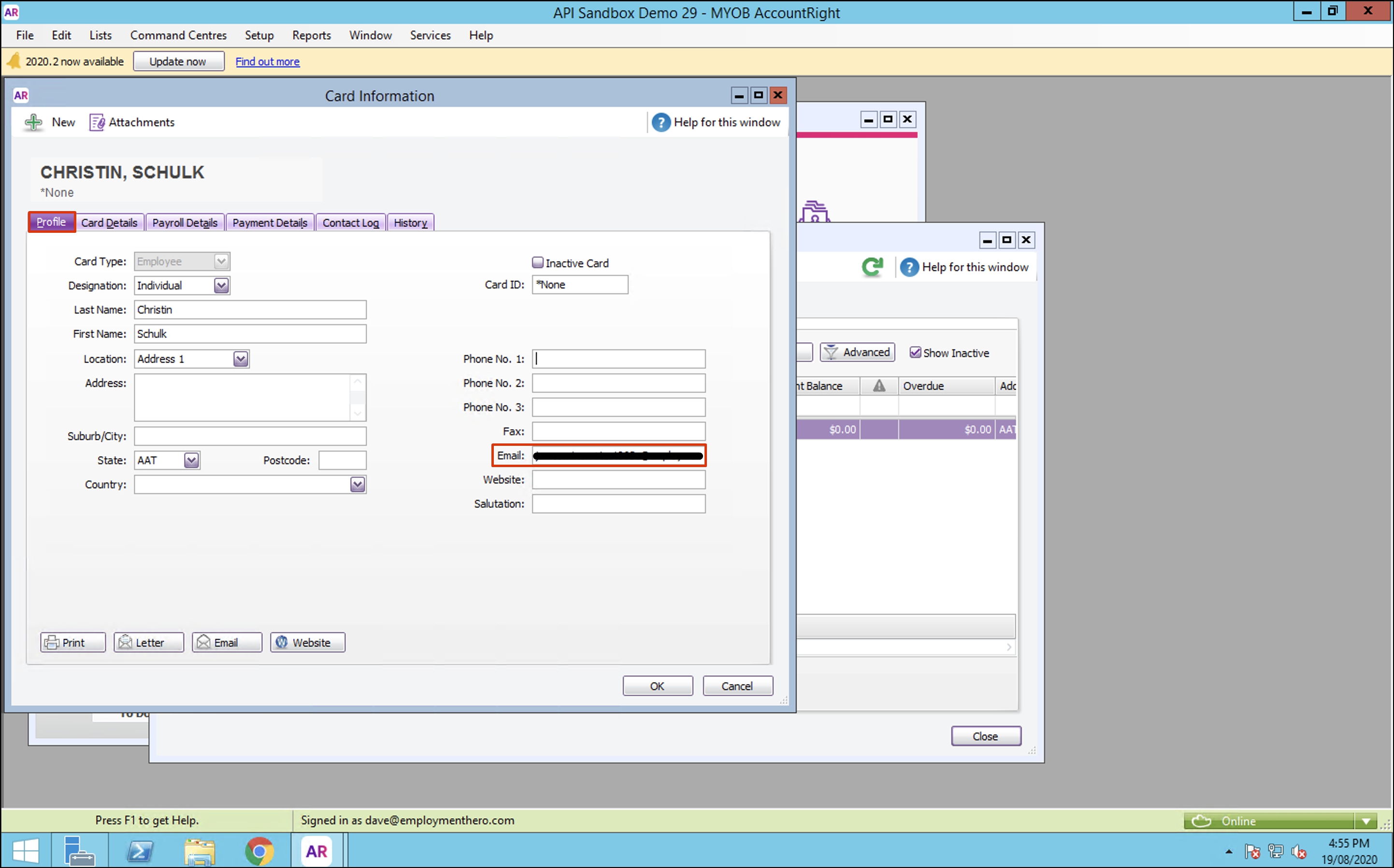 The error occurs when an employee does not have an email address entered in their MYOB Account Right card file; because of this, Employment Hero will not import the employee record.