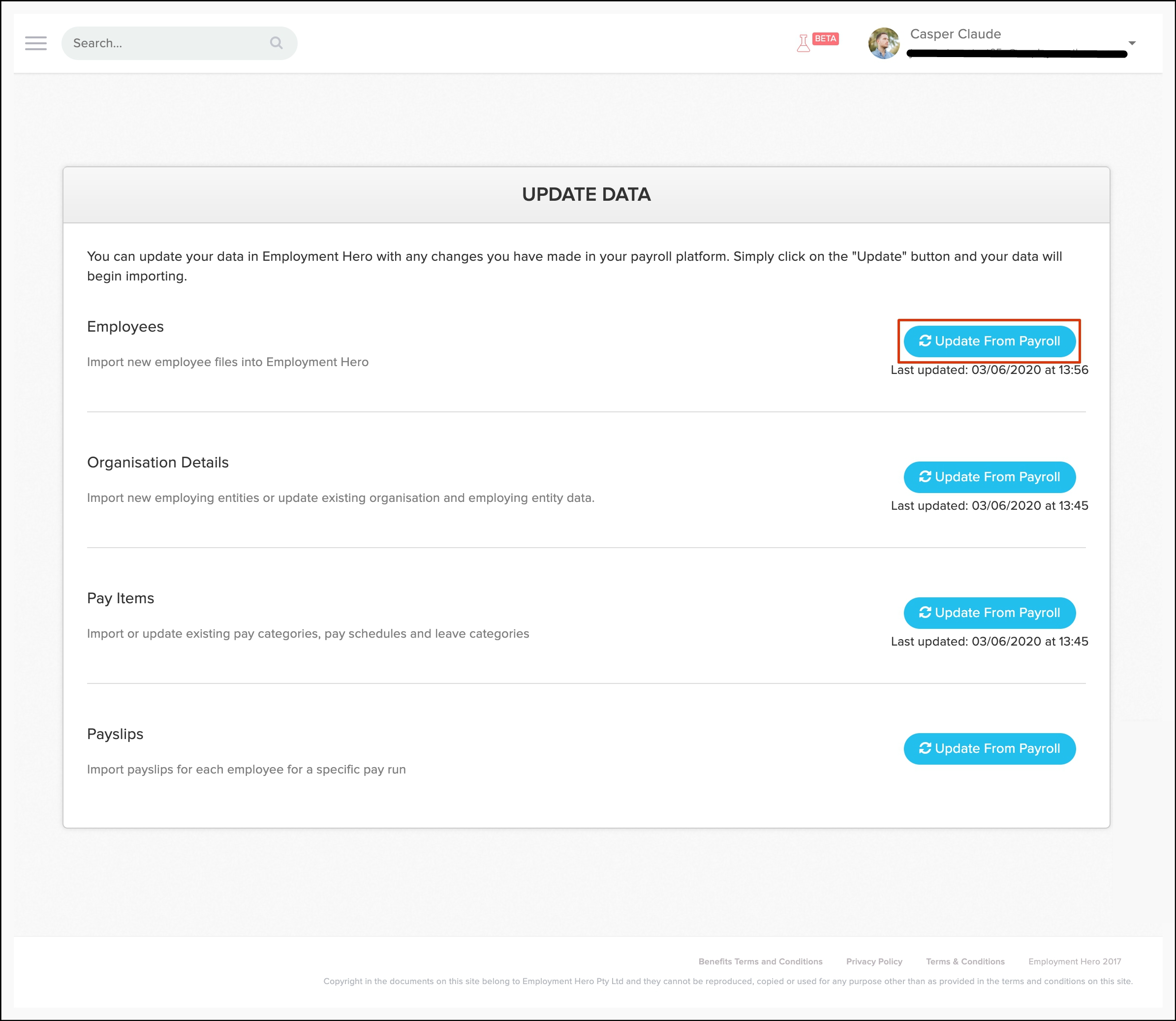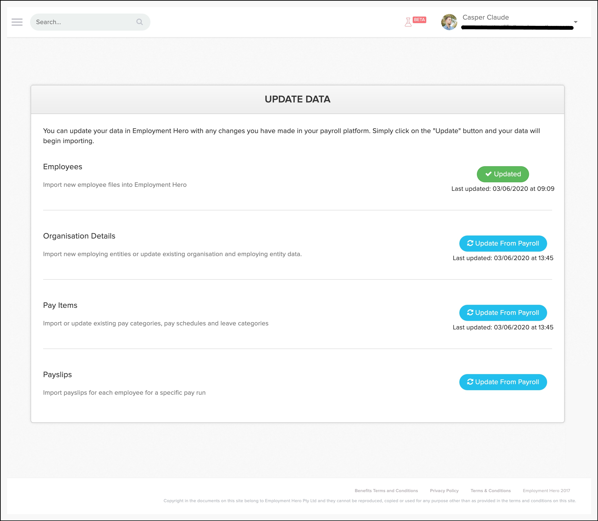 The Employees section will now show a green Updated button. It means Employment Hero has successfully imported your employees from MYOB Account Right.