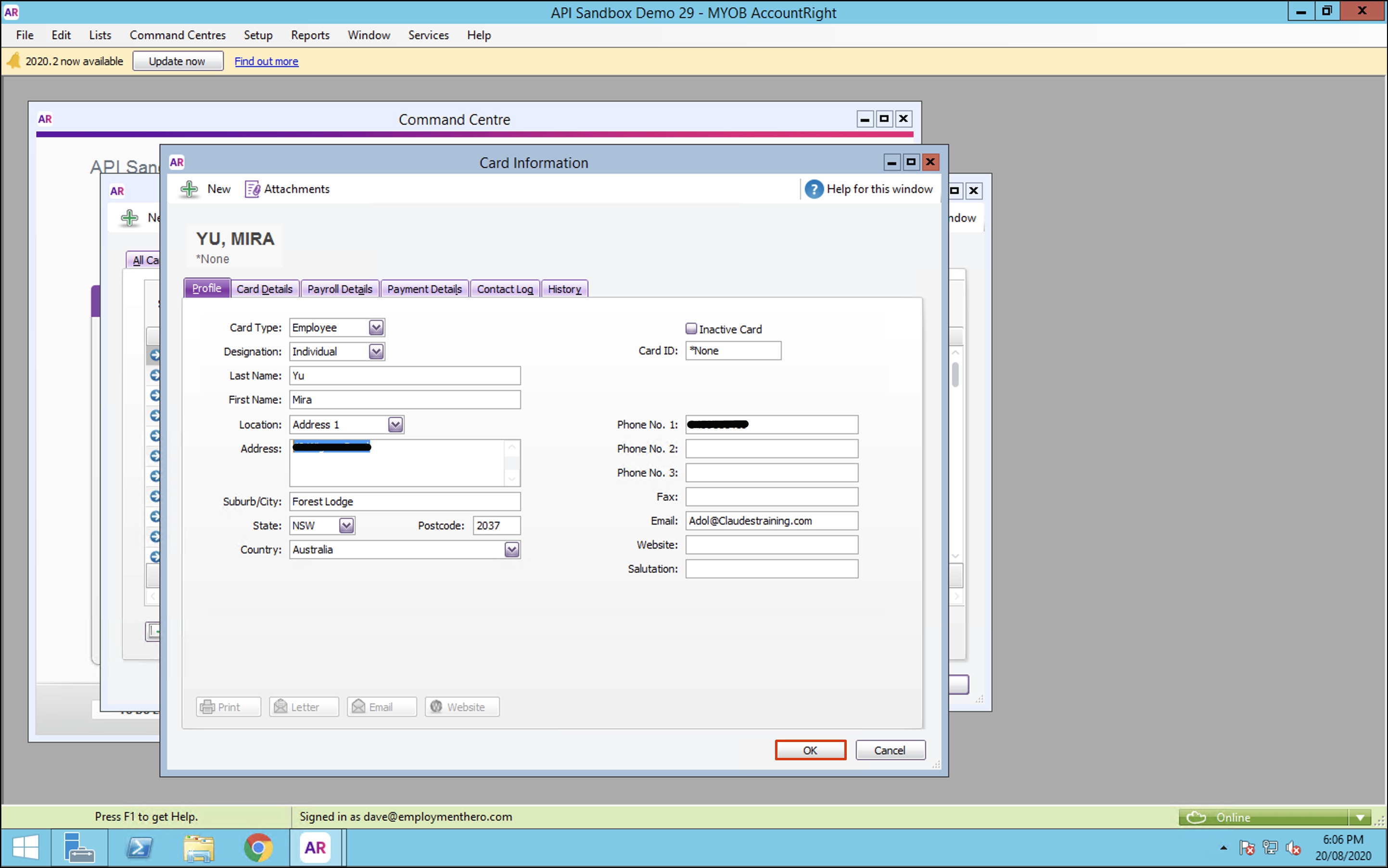 Adding the employee details into your organisation's card file in MYOB Account Right, re-syncing the two platforms, and resolving this follow-up error, will then enable these employees to sync between your HR classic platform and MYOB Account Right.