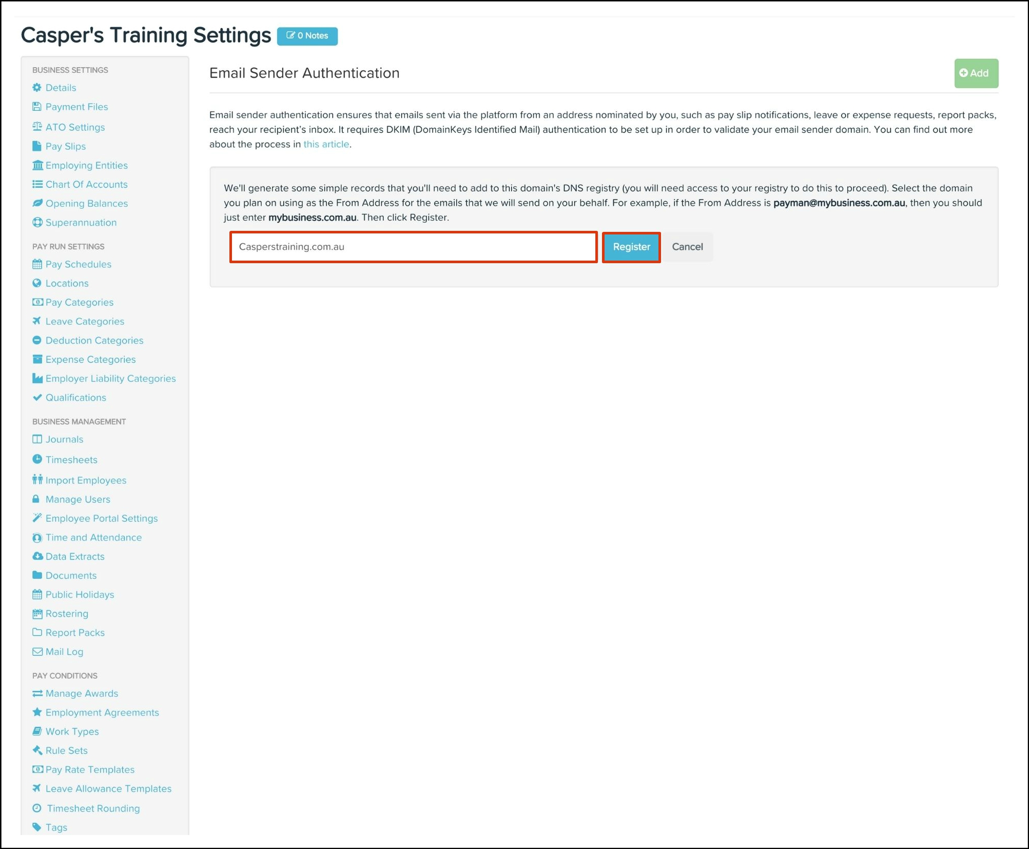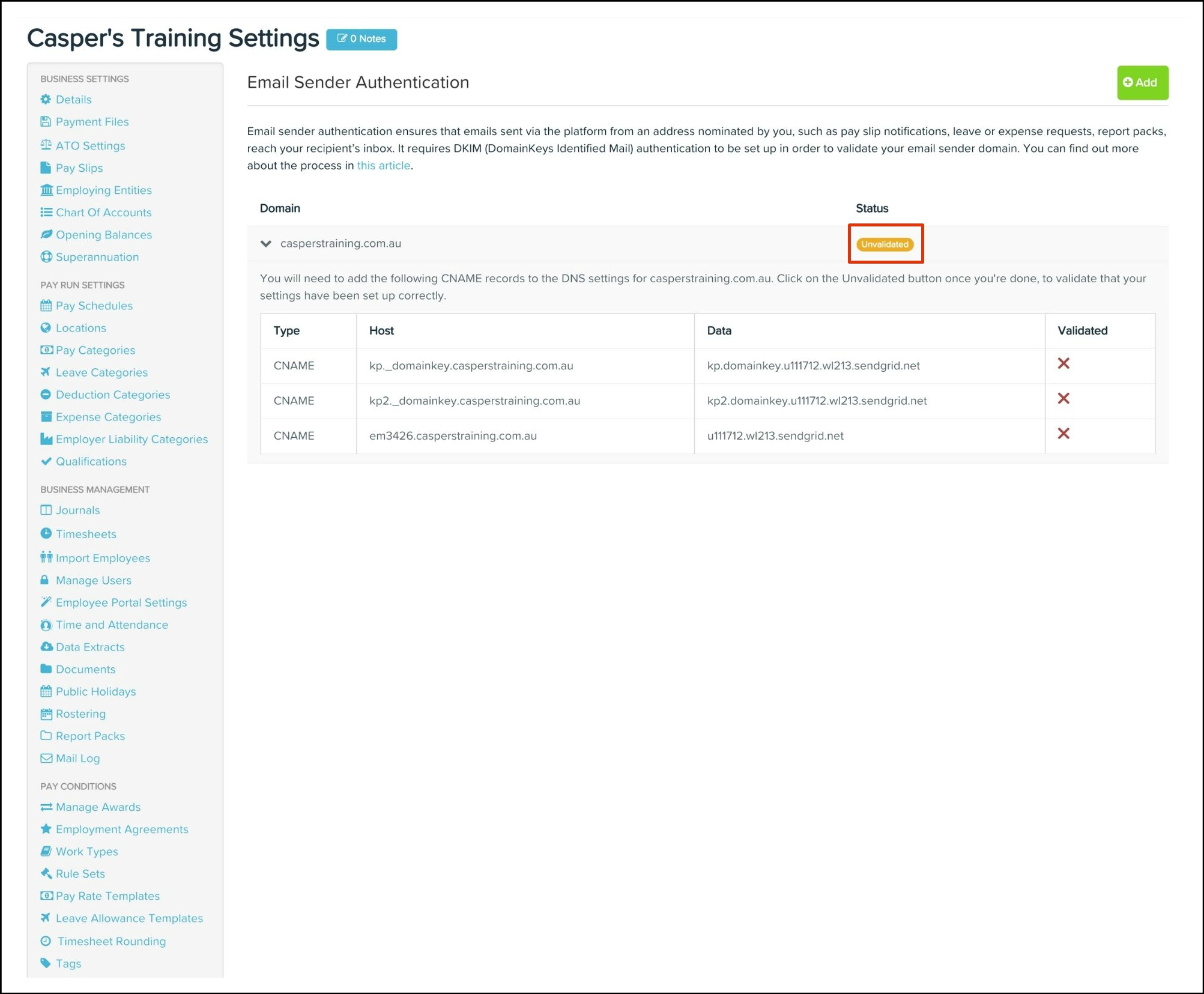Setting up DKIM Email Authentication requires you to change both your Payroll classic platform settings and your DNS host settings.