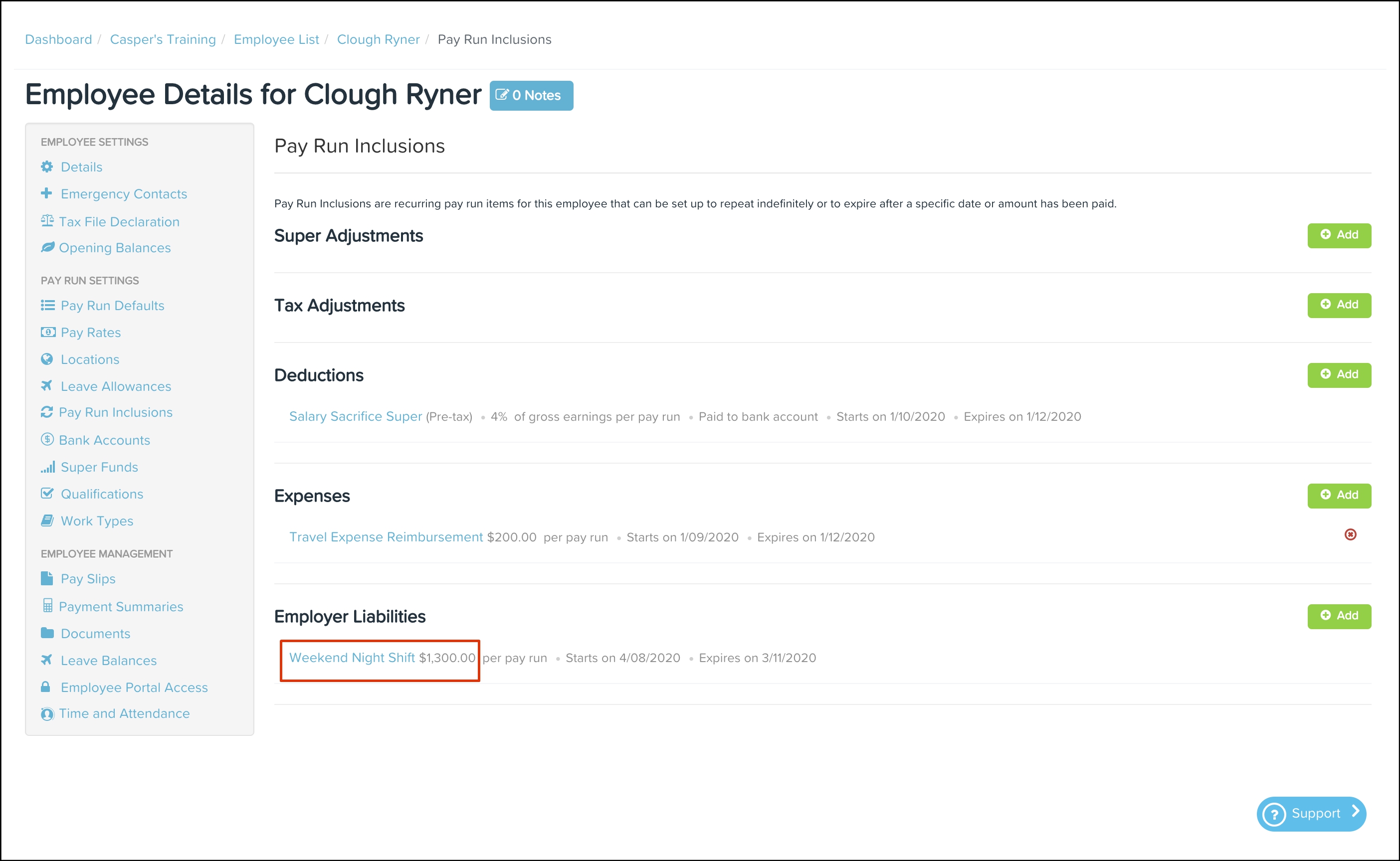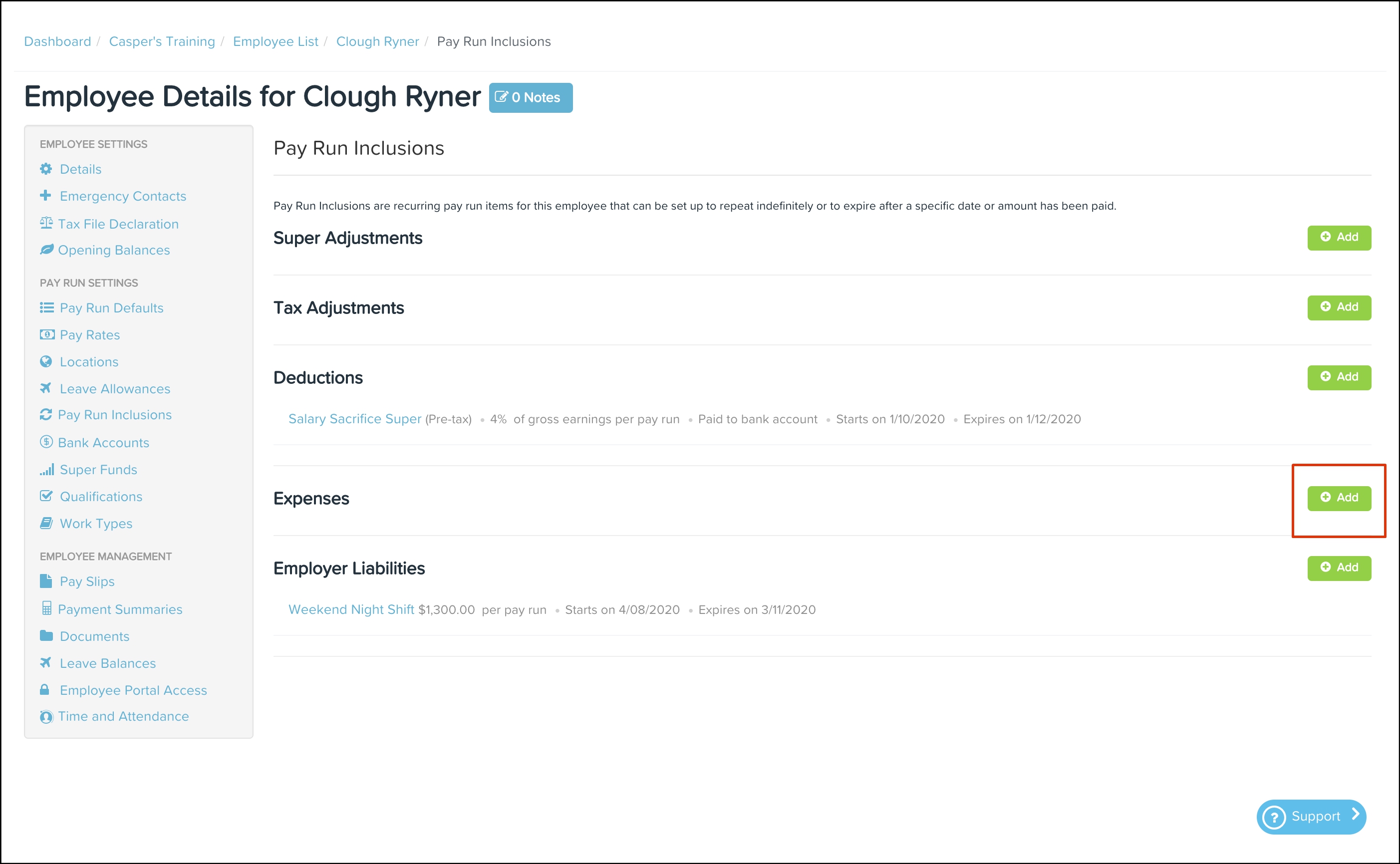 The expense reimbursement process allows employers to pay back employees who have spent their own money on business-related expenses. The Pay Run Inclusions Expenses feature allows you to set up an automated expense where you can choose the category, the date the inclusion starts on, and the expense amount. You can also use this feature to edit any information entered previously and delete a record that is no longer required.