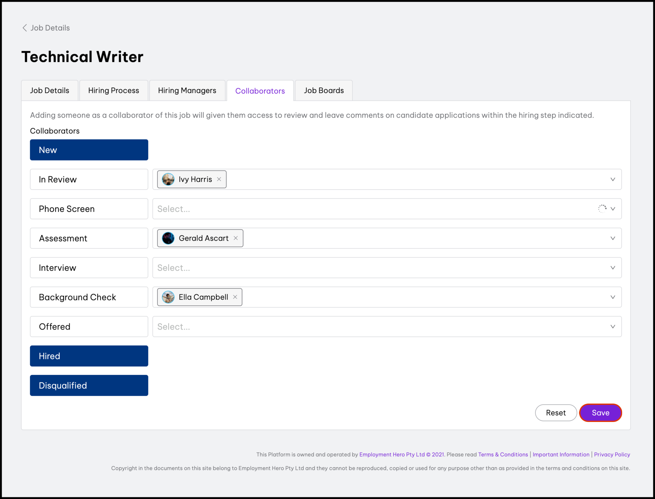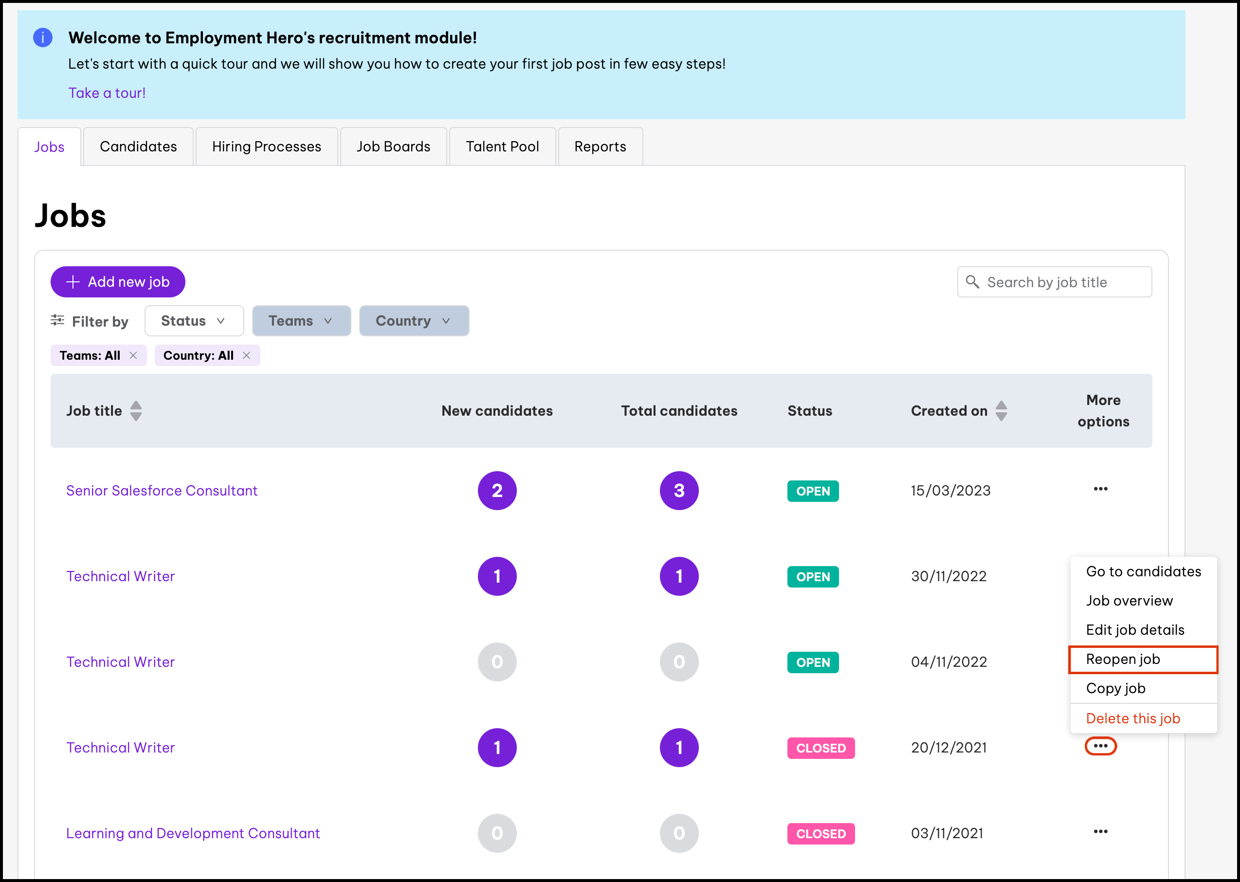 - Managing your organisation's hiring processes via the HR platform This feature allows you to create a new hiring process you can customise to your organisation's needs.