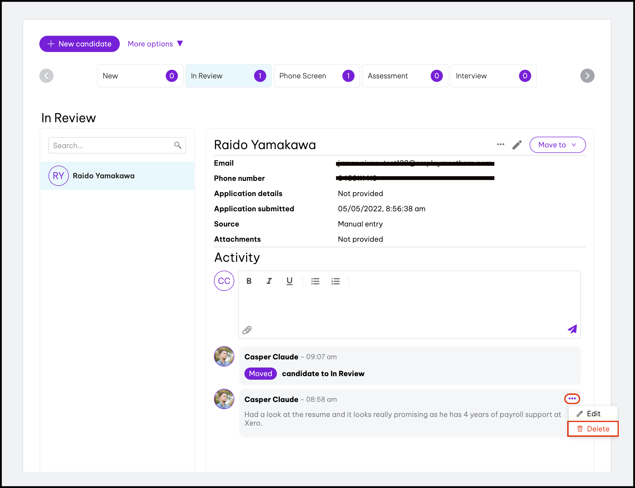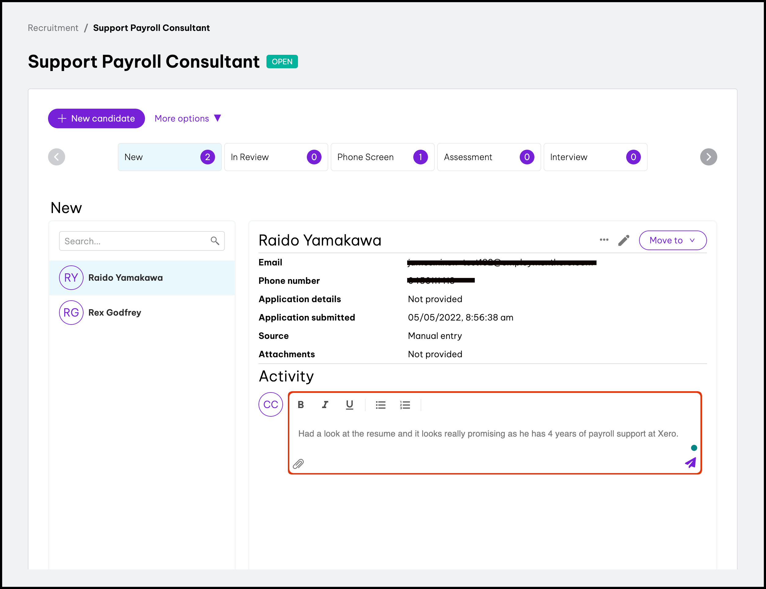 - You can see all the candidates within a role by clicking the Role title.