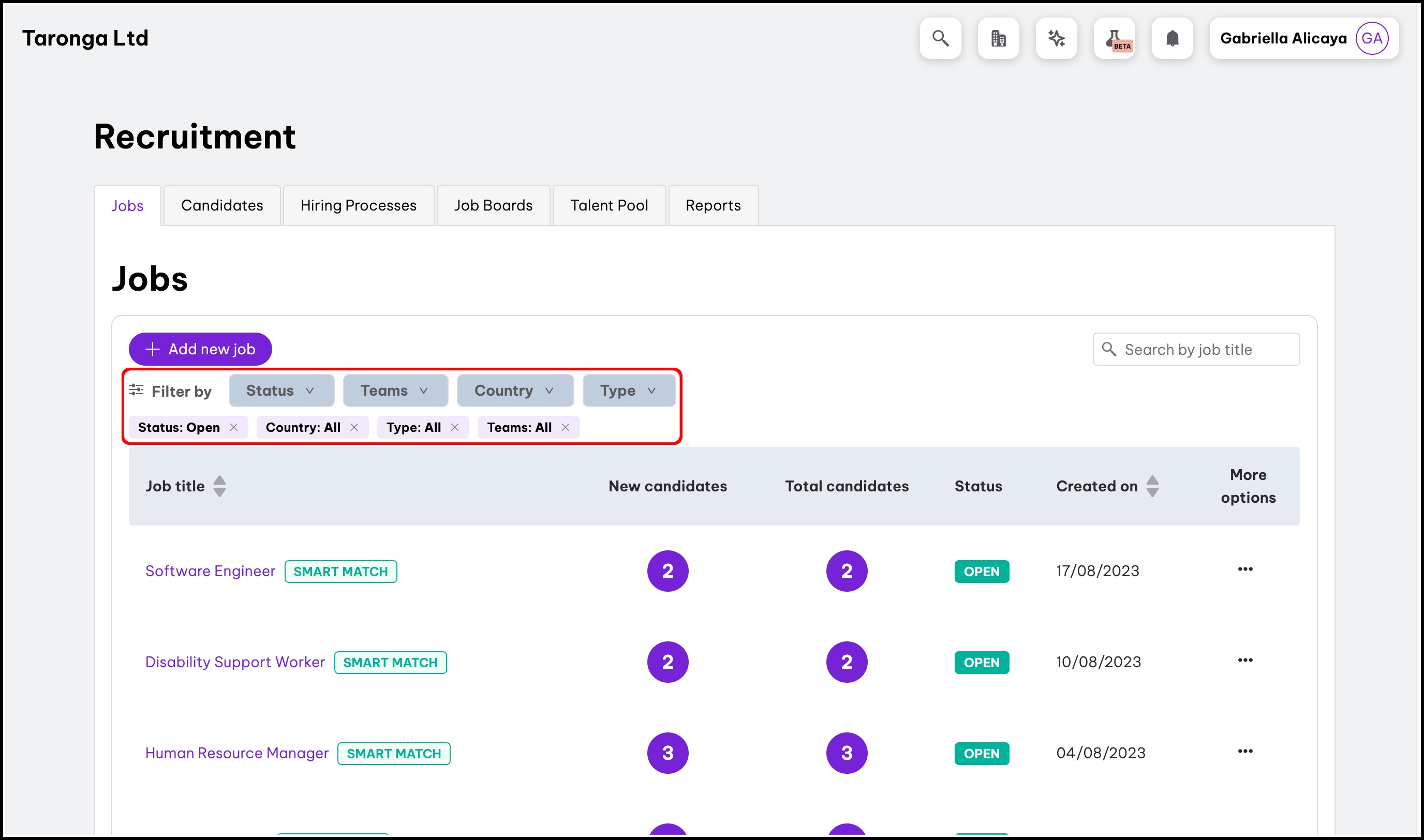 - Filters are pre-set to show active roles in all teams and countries. Simply click a filter to change your results.
