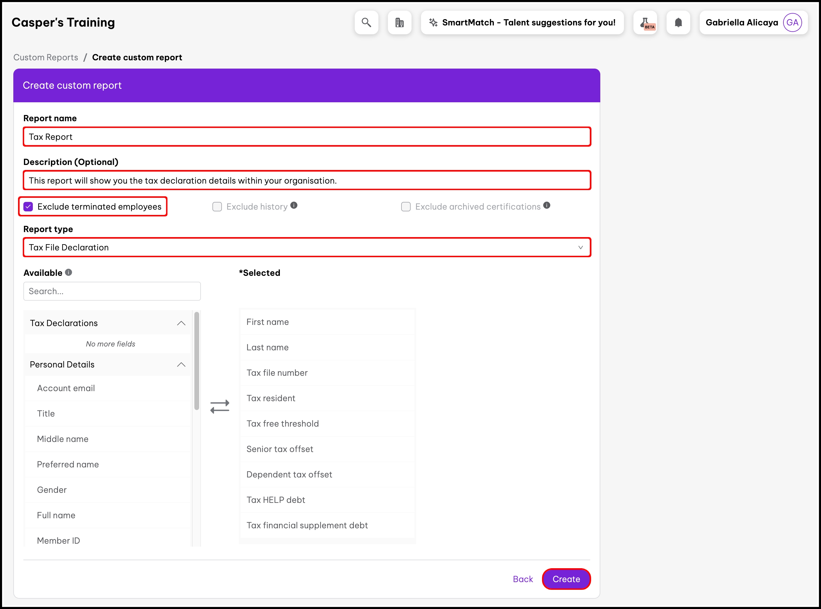 You can use the Custom Report feature to construct a report on the tax declaration details entered by your employees during their onboarding workflow or updated in their employee file.