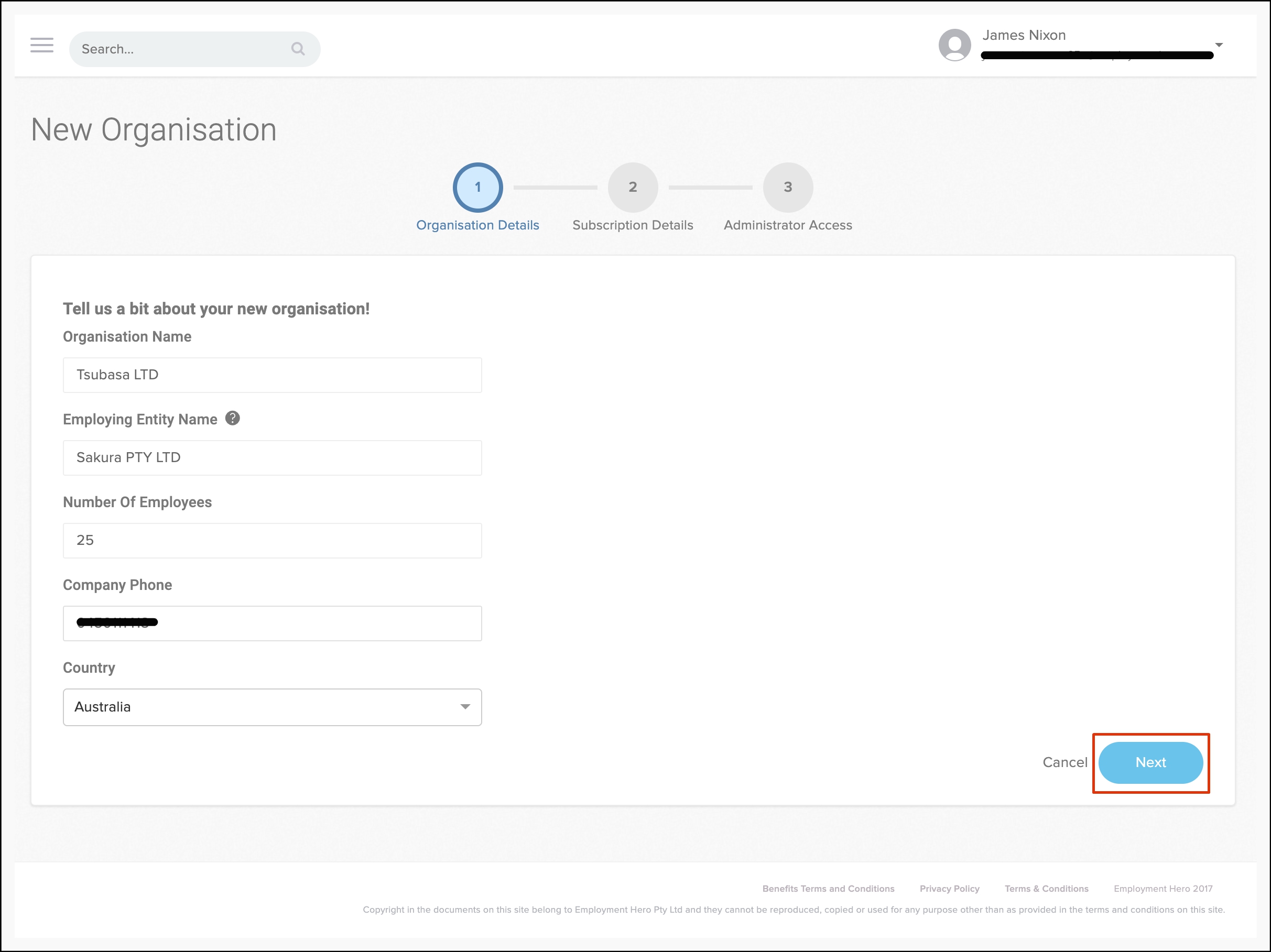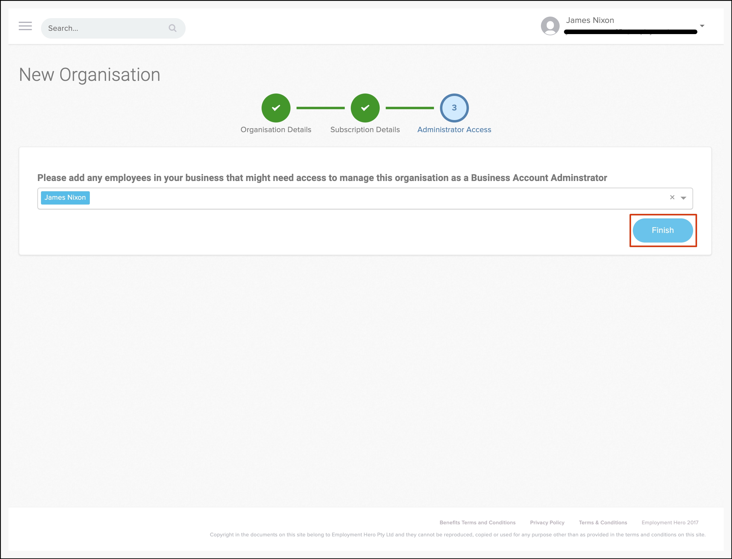 - Select what employees you will have managing this organisation.