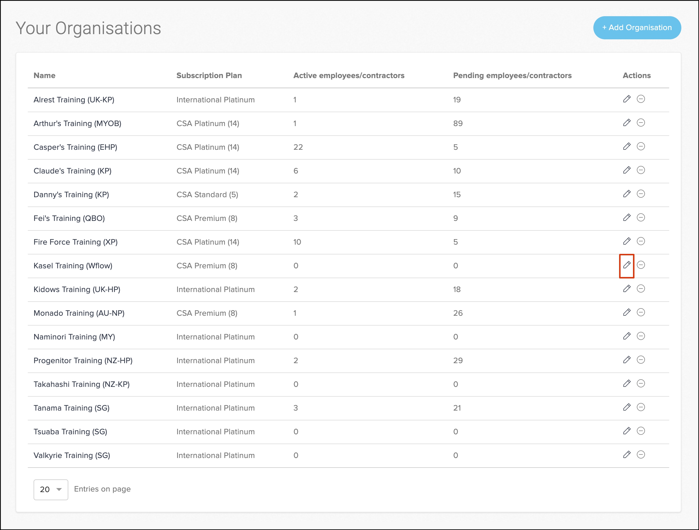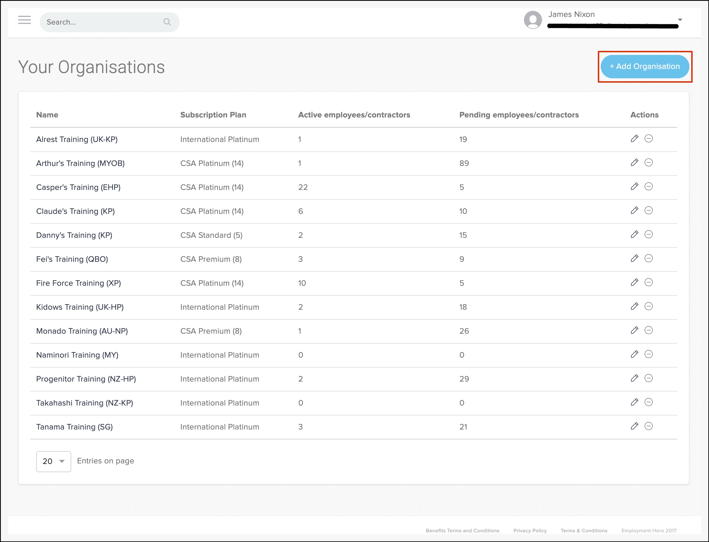 - Click the Add Organisation button.