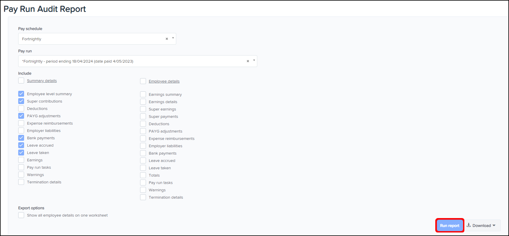 - Click the Pay run audit report button.
