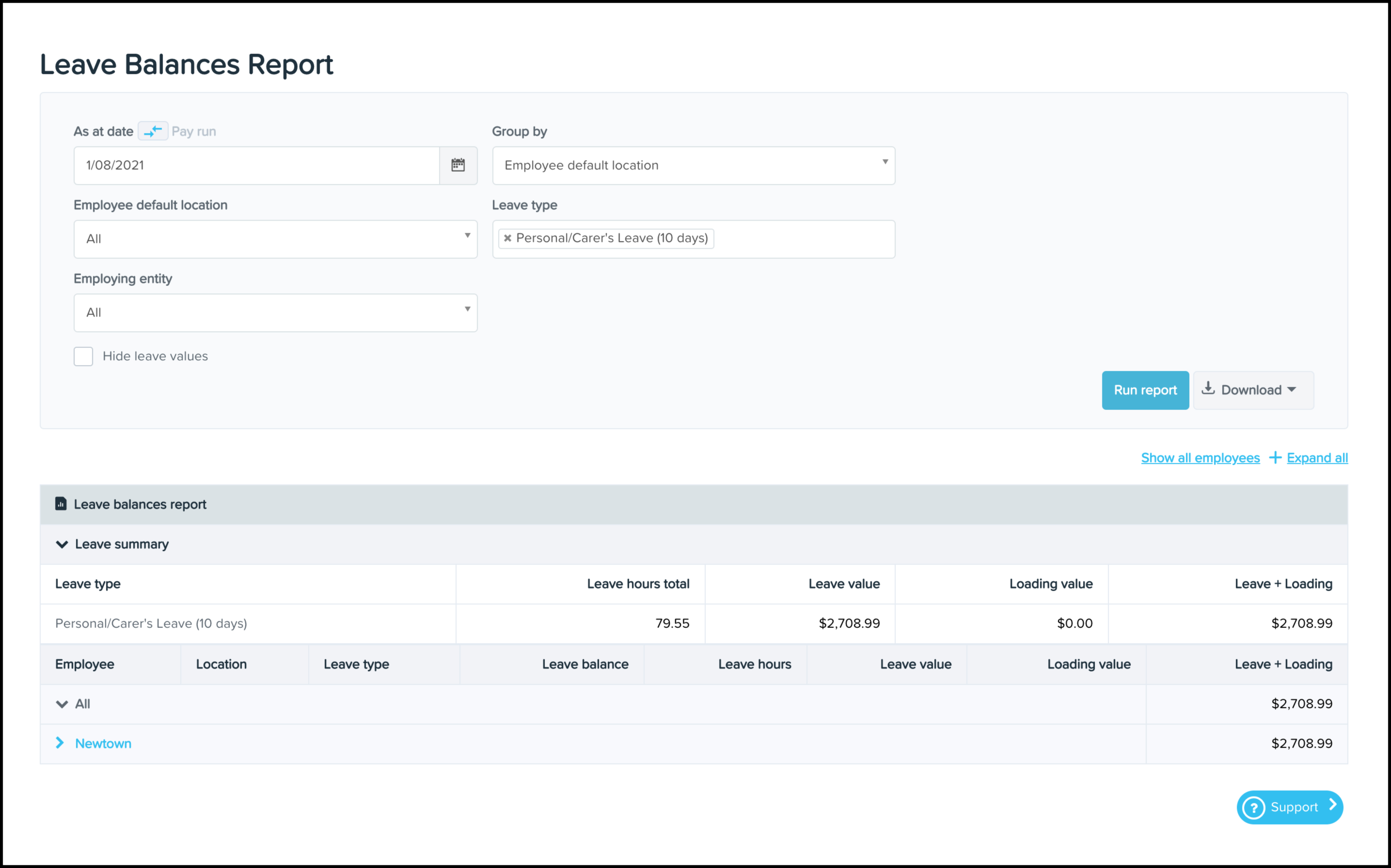 Please refer to the Switching between the "As at date" and "Pay run" filters item in Further information to learn about the two filters.