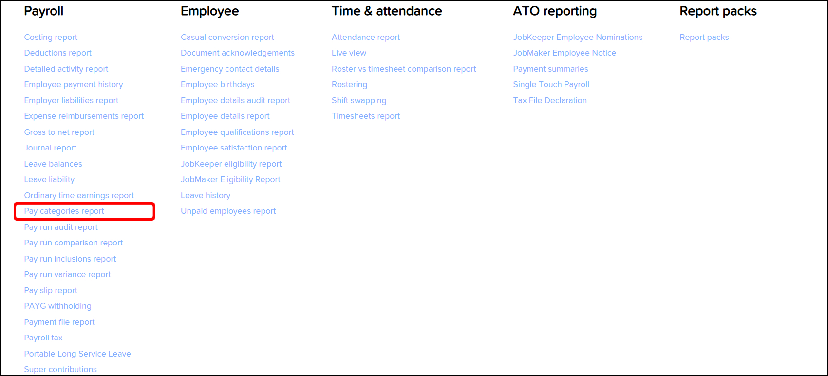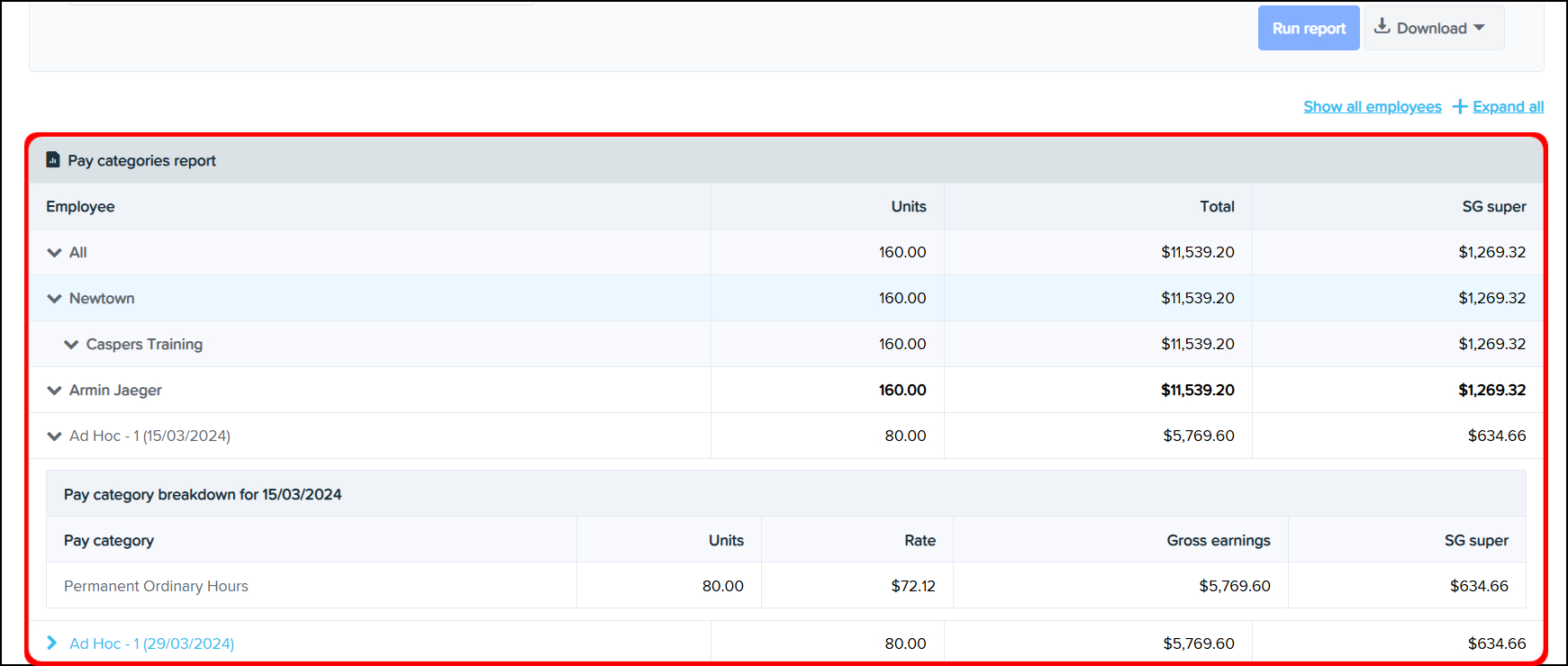 You will now see your pay categories report on your screen when you scroll down.
