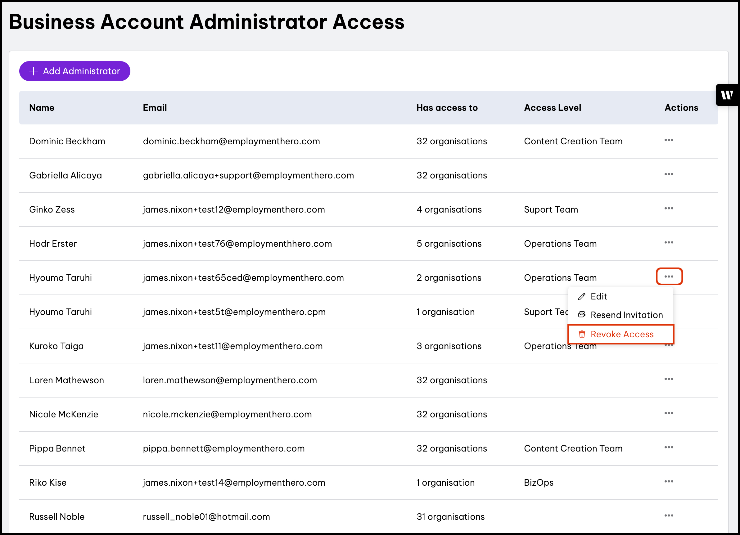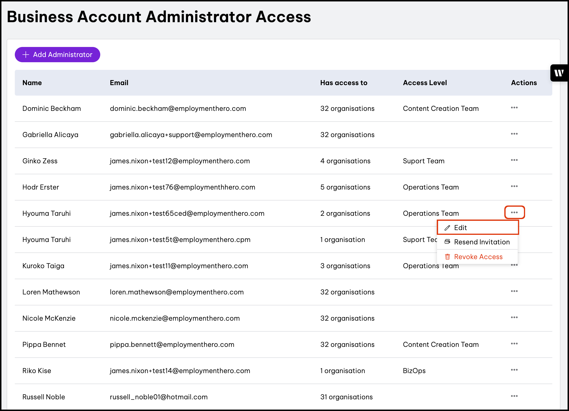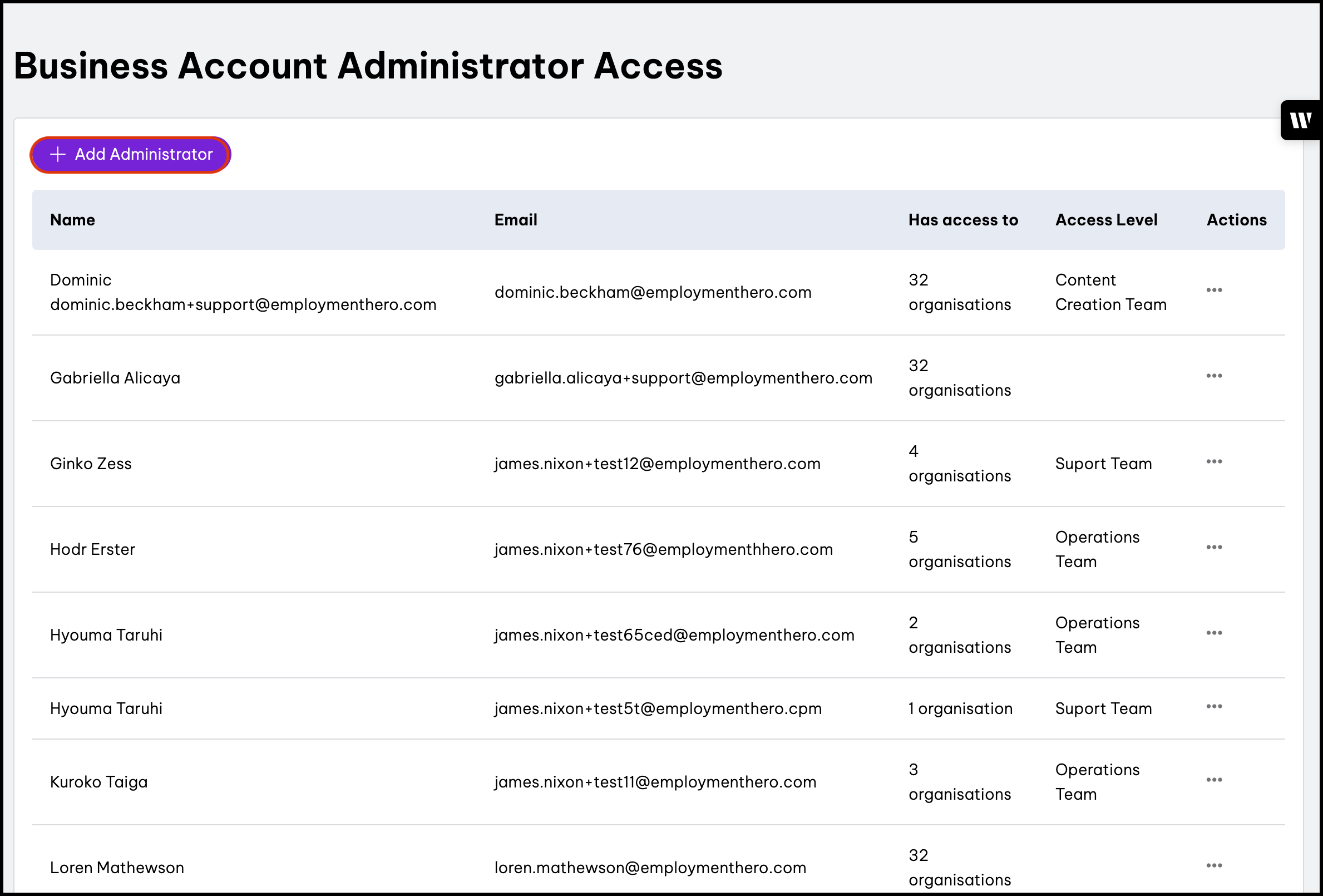 The Administrator Access feature within the Business Portal allows you to enter the details of a user that needs setting up as a business portal administrator, with the ability to specify details such as what organisation they manager, and what access level they fall under. You can also use this feature to edit any previously created information and delete a record if it is no longer required.