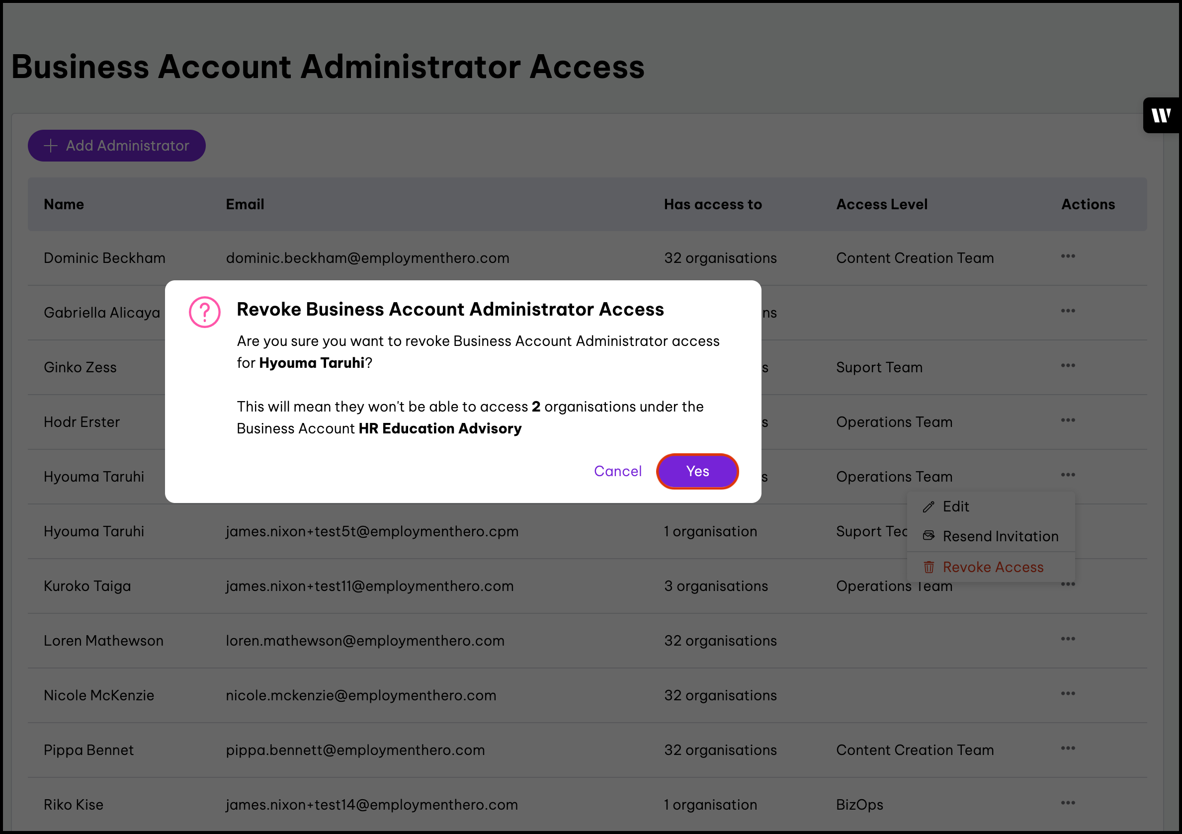 - Be receiving email notifications on organisations they manage for Global Teams.