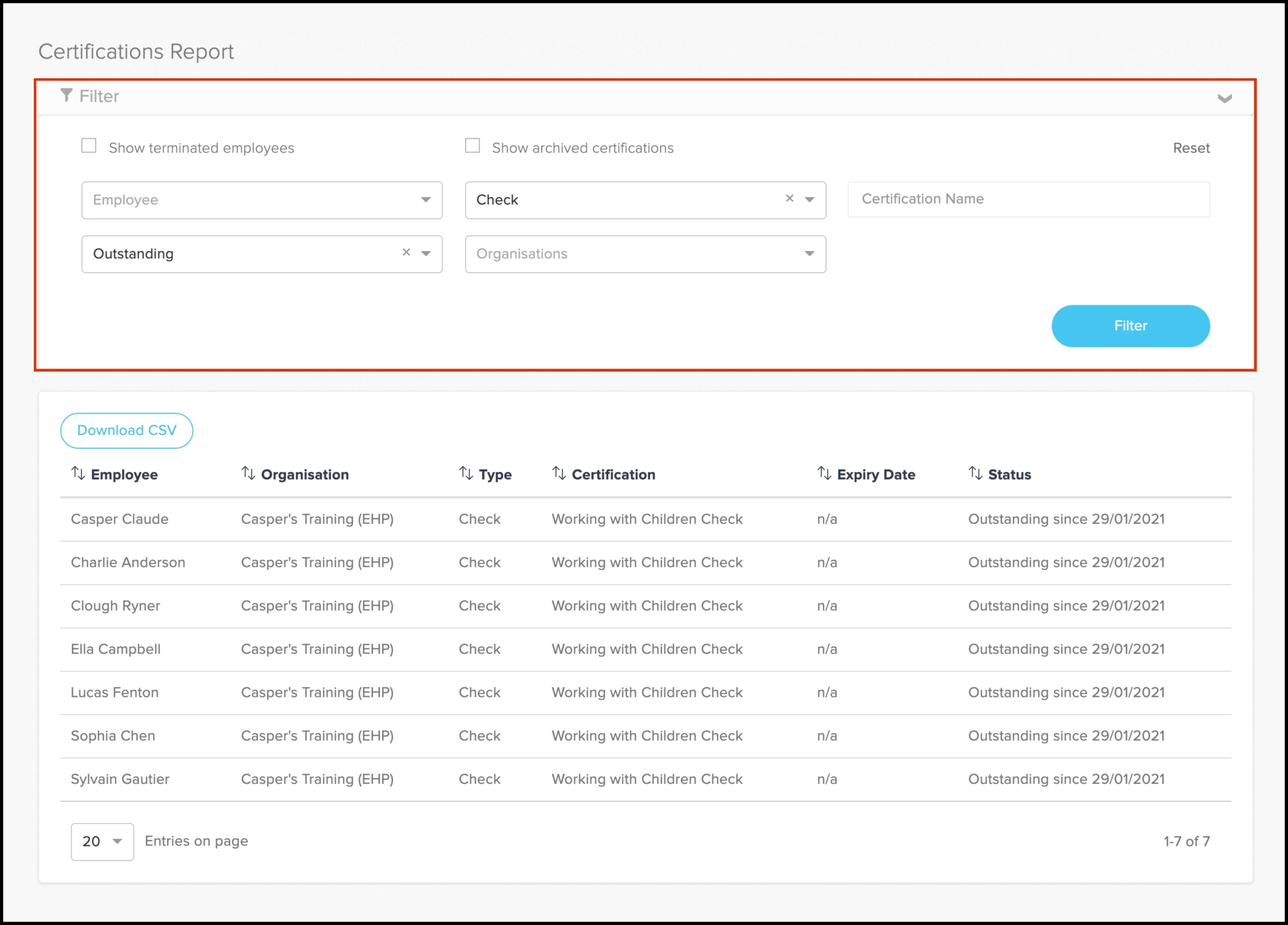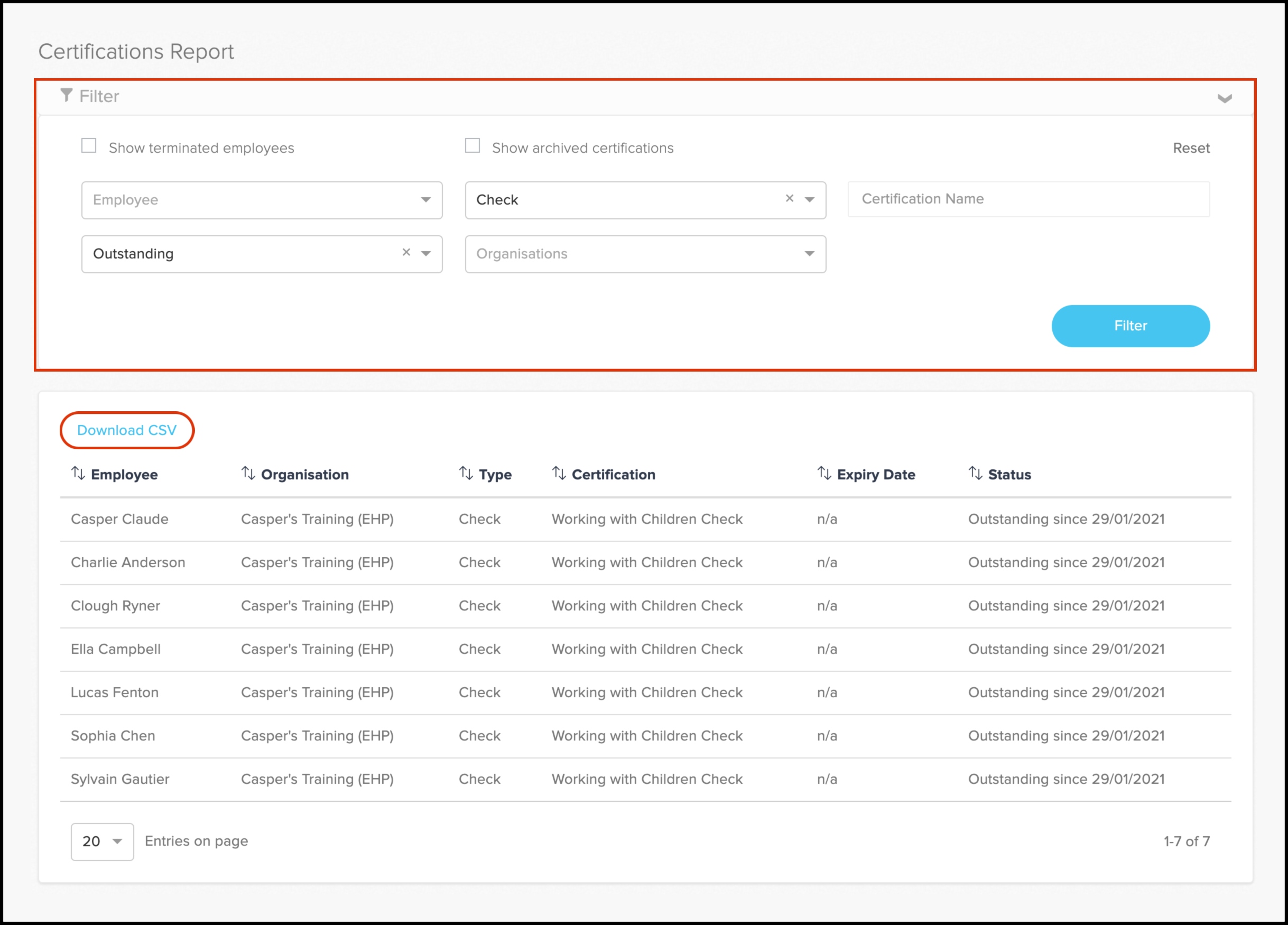 The Business Portal Certifications Reporting feature allows you to create a report that you can use to analyse how your employees are progressing with their assigned certifications, see what is overdue and when their manager approved their submission. You can also use this feature to download a CSV file of the data, enabling you to load the report into a CSV-supported program like Microsoft Excel.