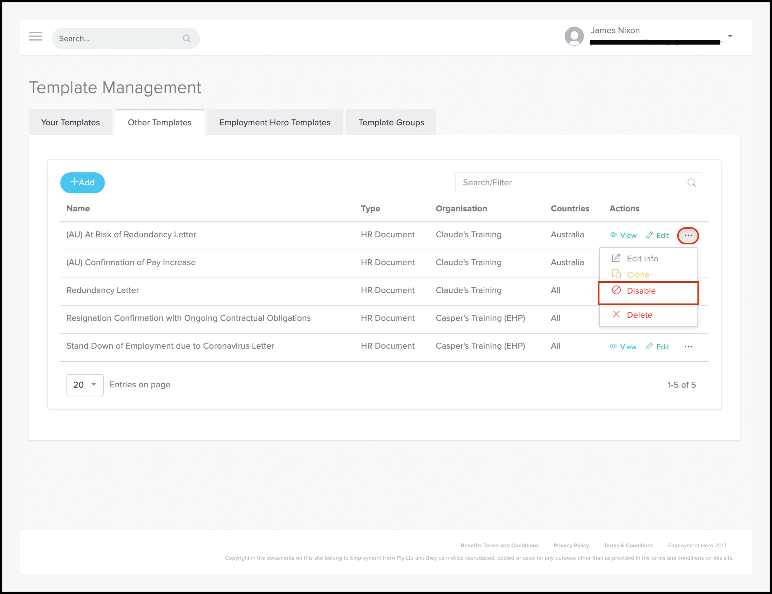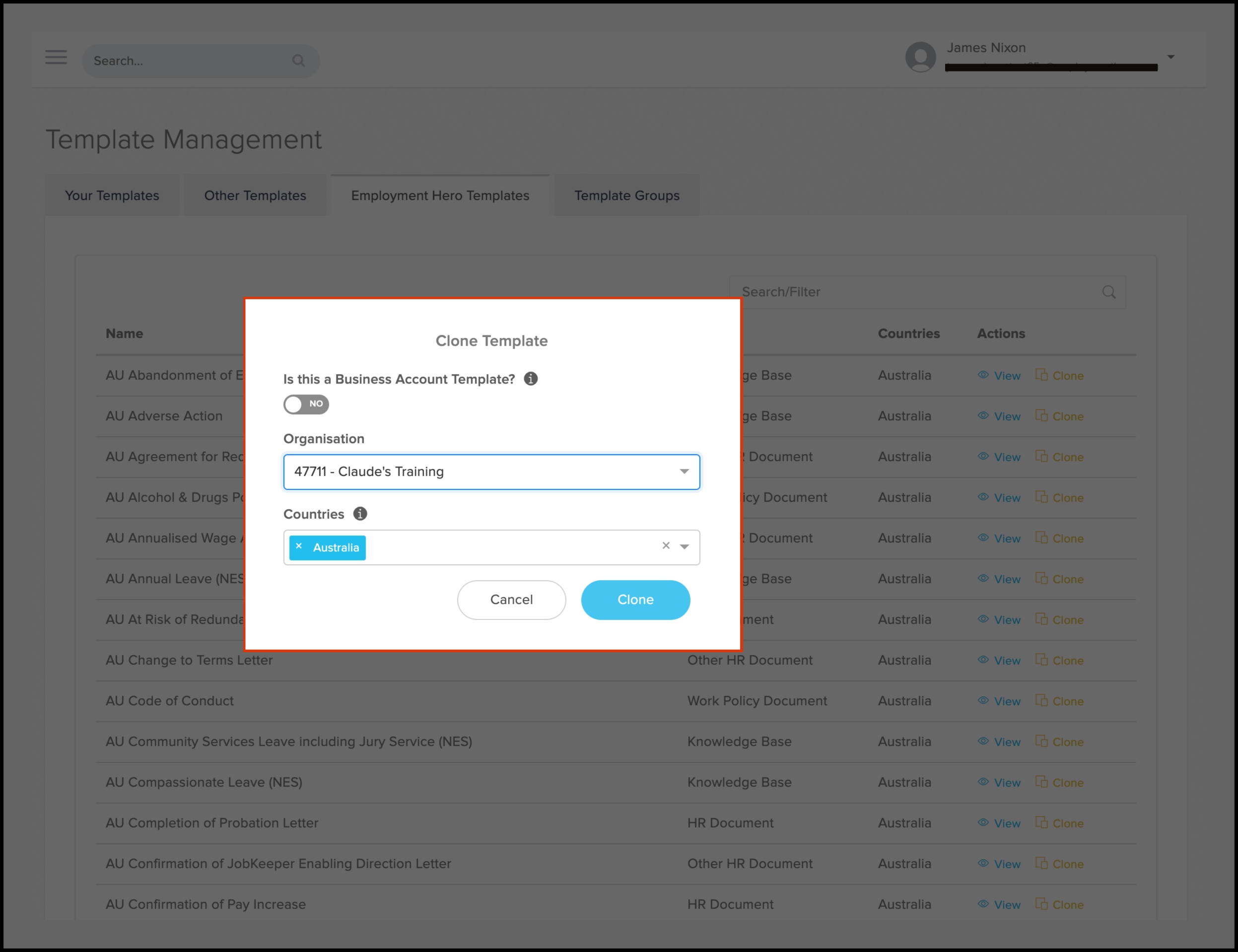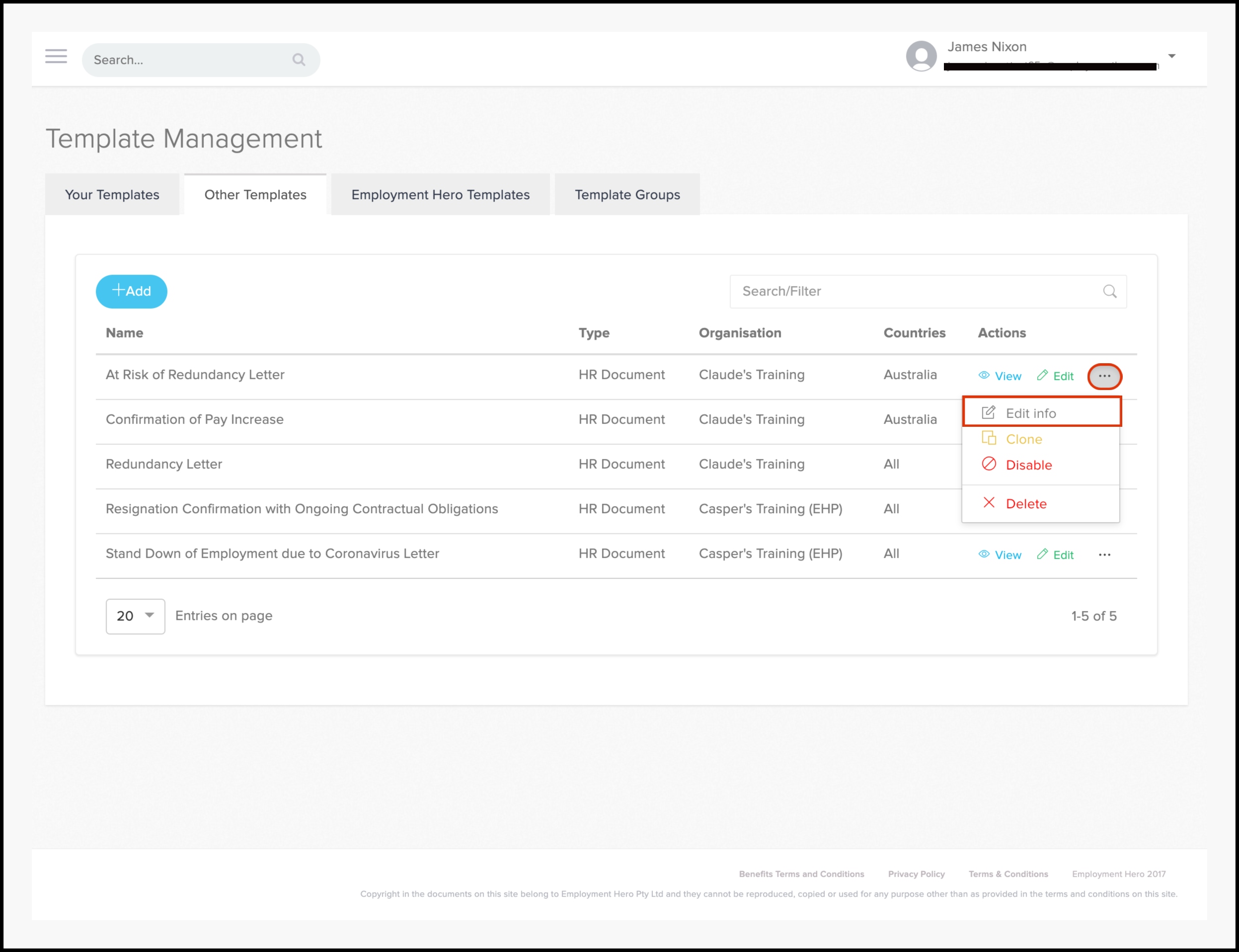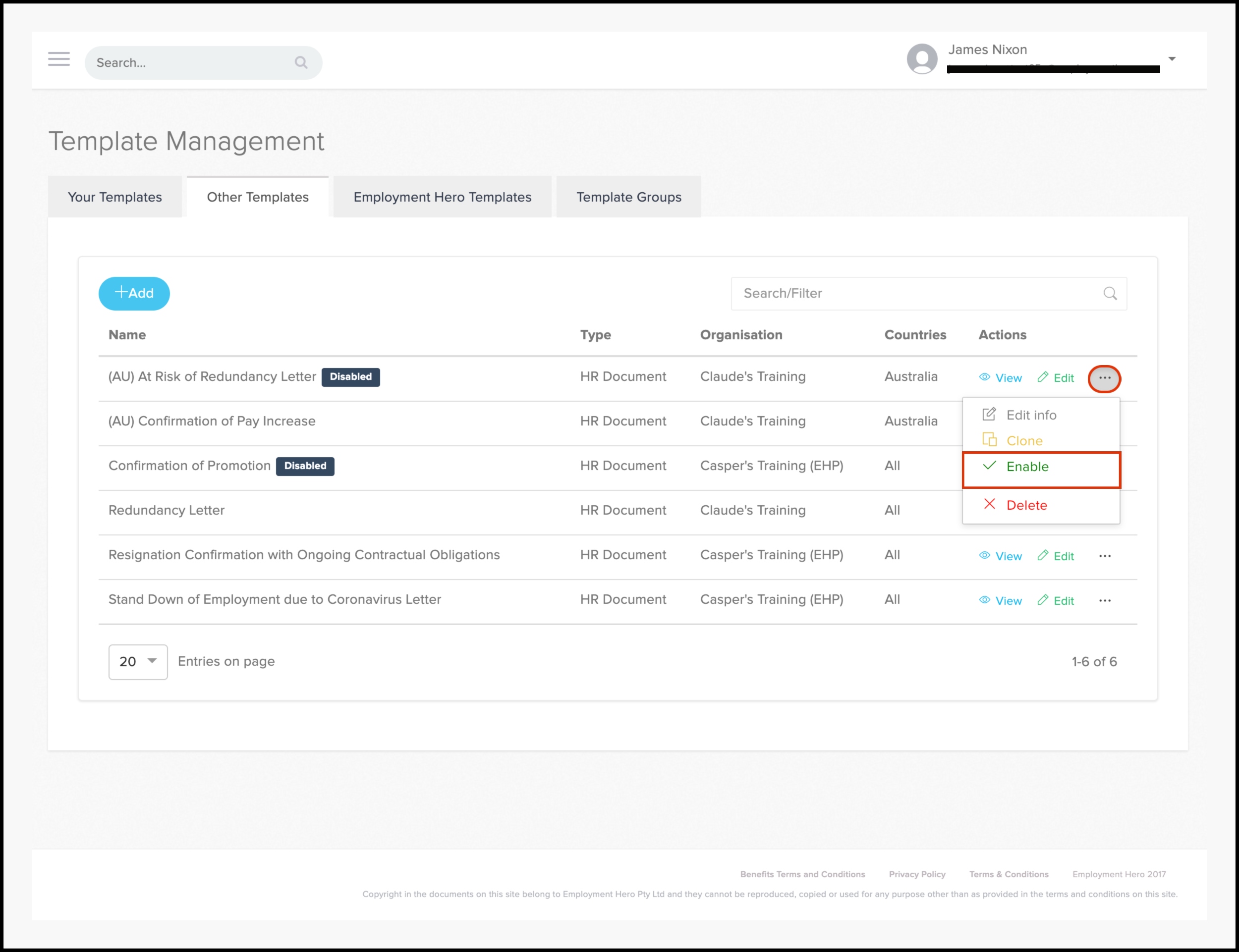 Only if you are a Value-Added Reseller, can you choose what Employment Hero Templates to exclude from your template group. By default, the platform includes all Employment Hero templates within a template group.
