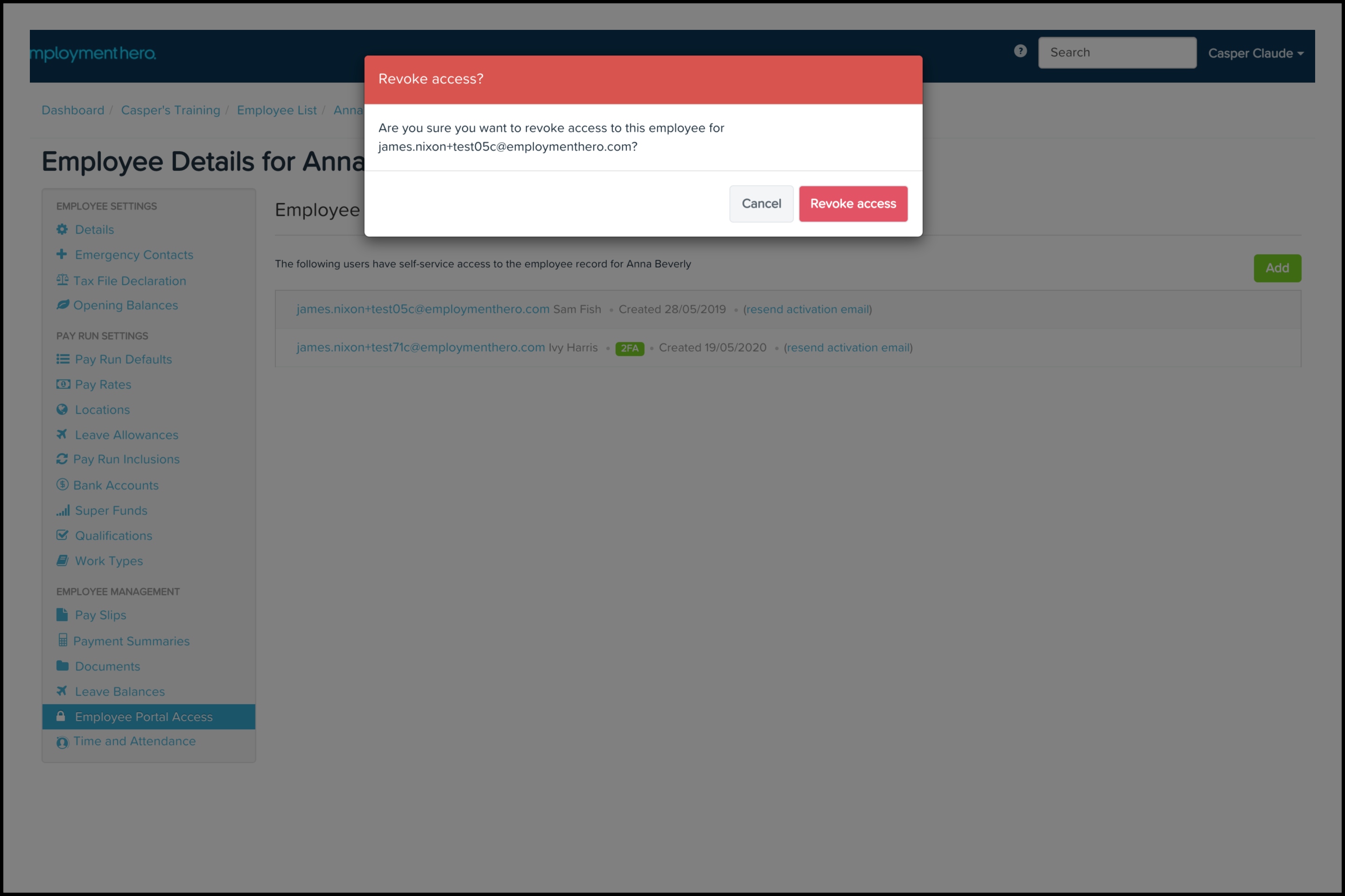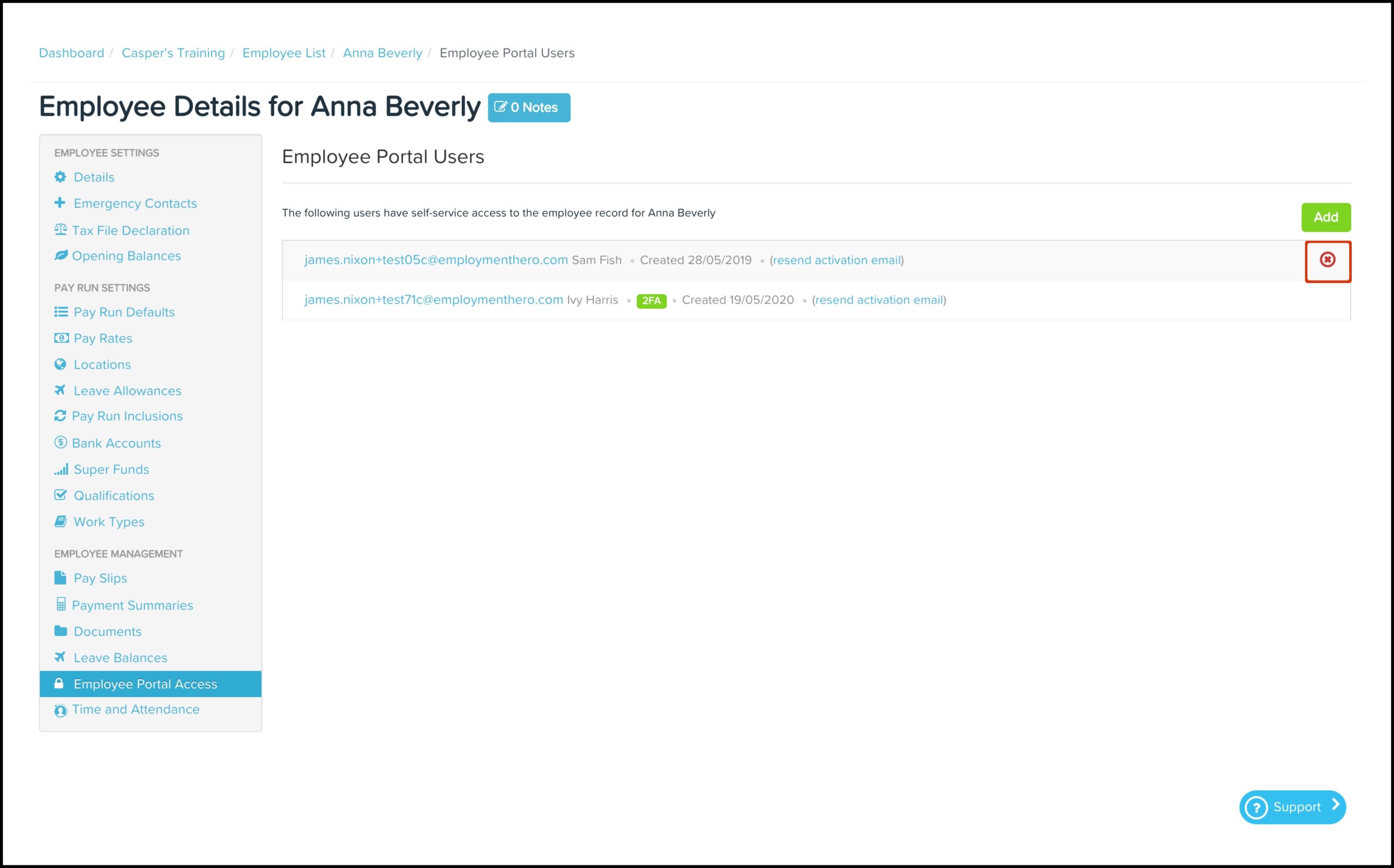 The Employee Portal Access feature allows you to grant access to employees who need to view an employee file in your organisation. You can also use this feature to resend the relevant access invitation as well as delete an employee's access if it is no longer required.