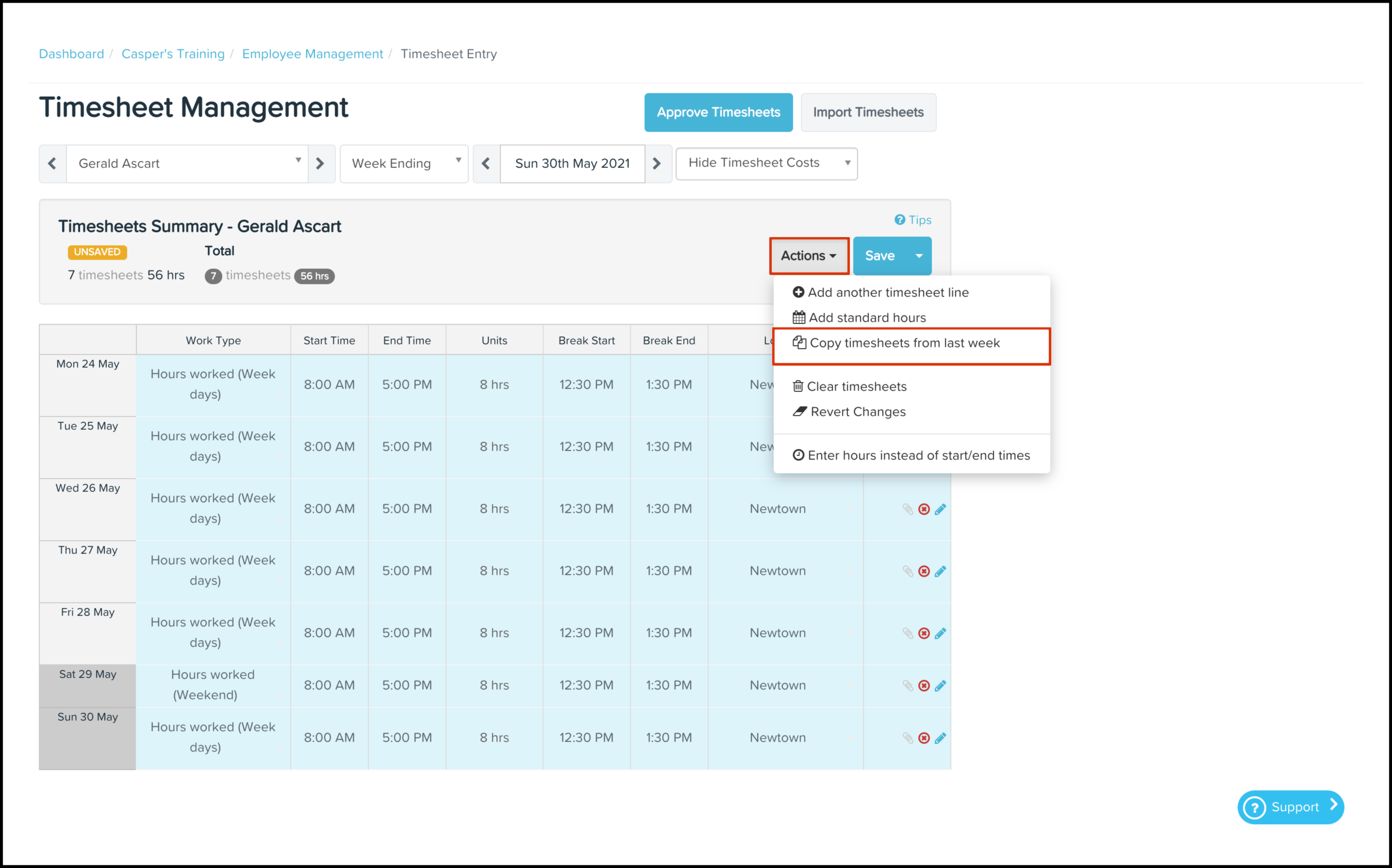 Click the Copy Timesheets from Last Week button.