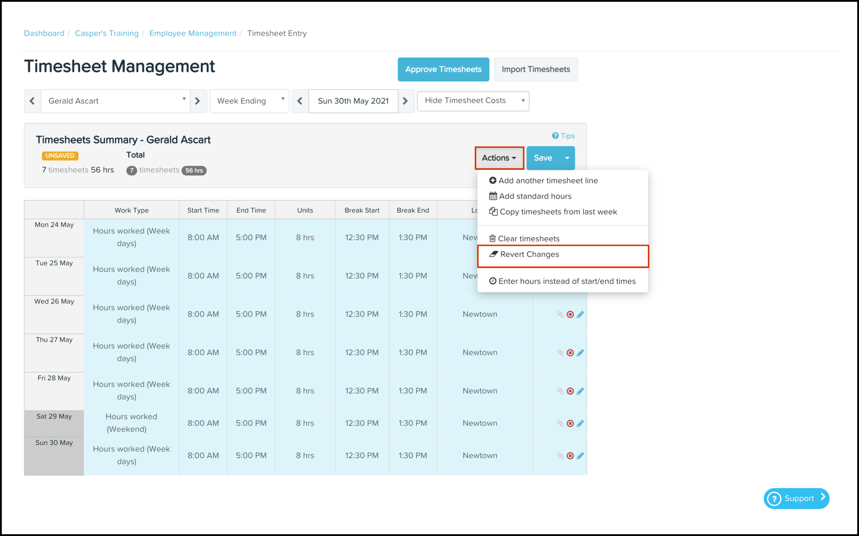 Reverting timesheet changes