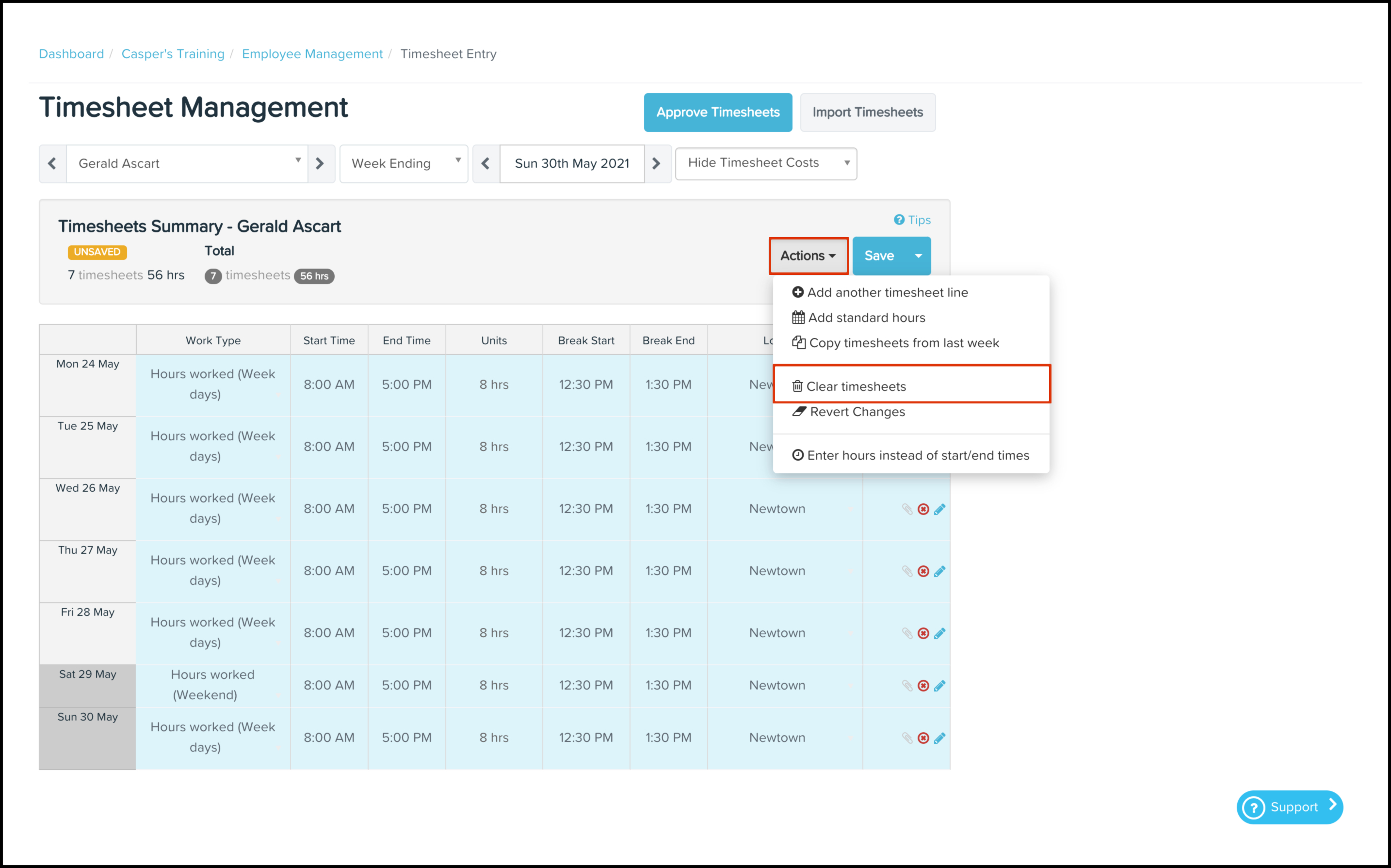 Click the Clear Timesheets button.