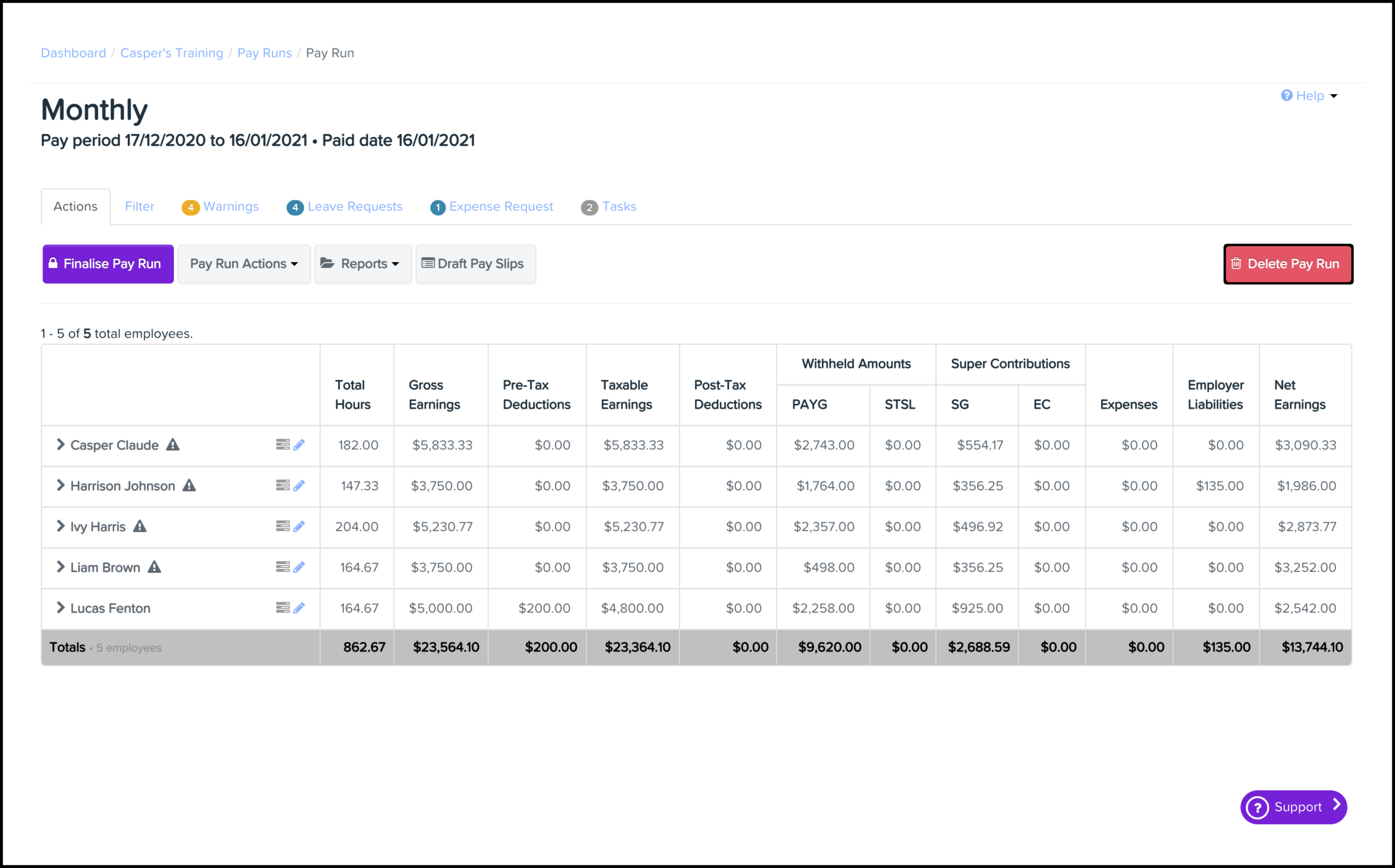Once automated super payments have been made or STP has been lodged for a pay run, it cannot be unlocked or deleted.