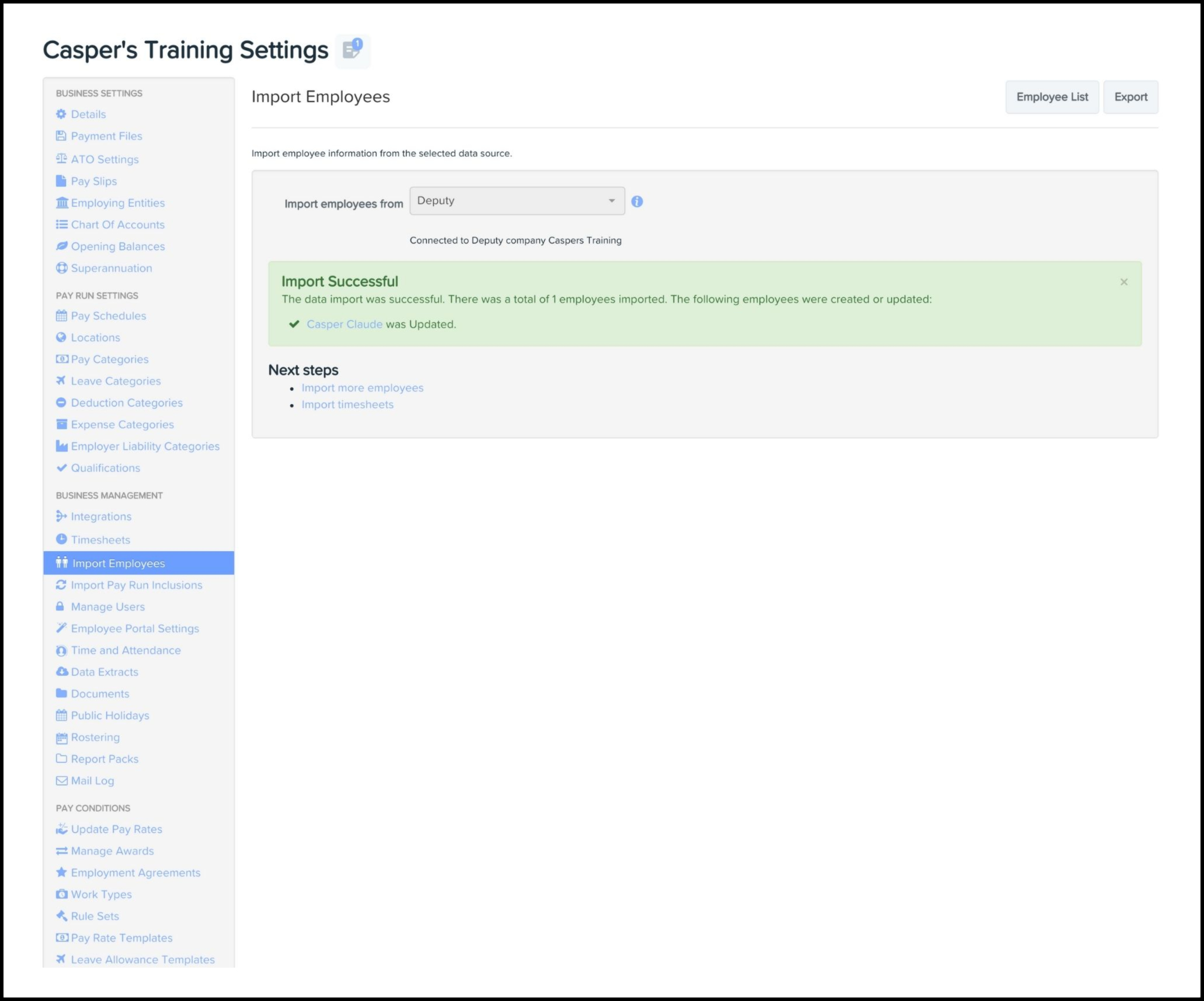 Importing my employees from Deputy