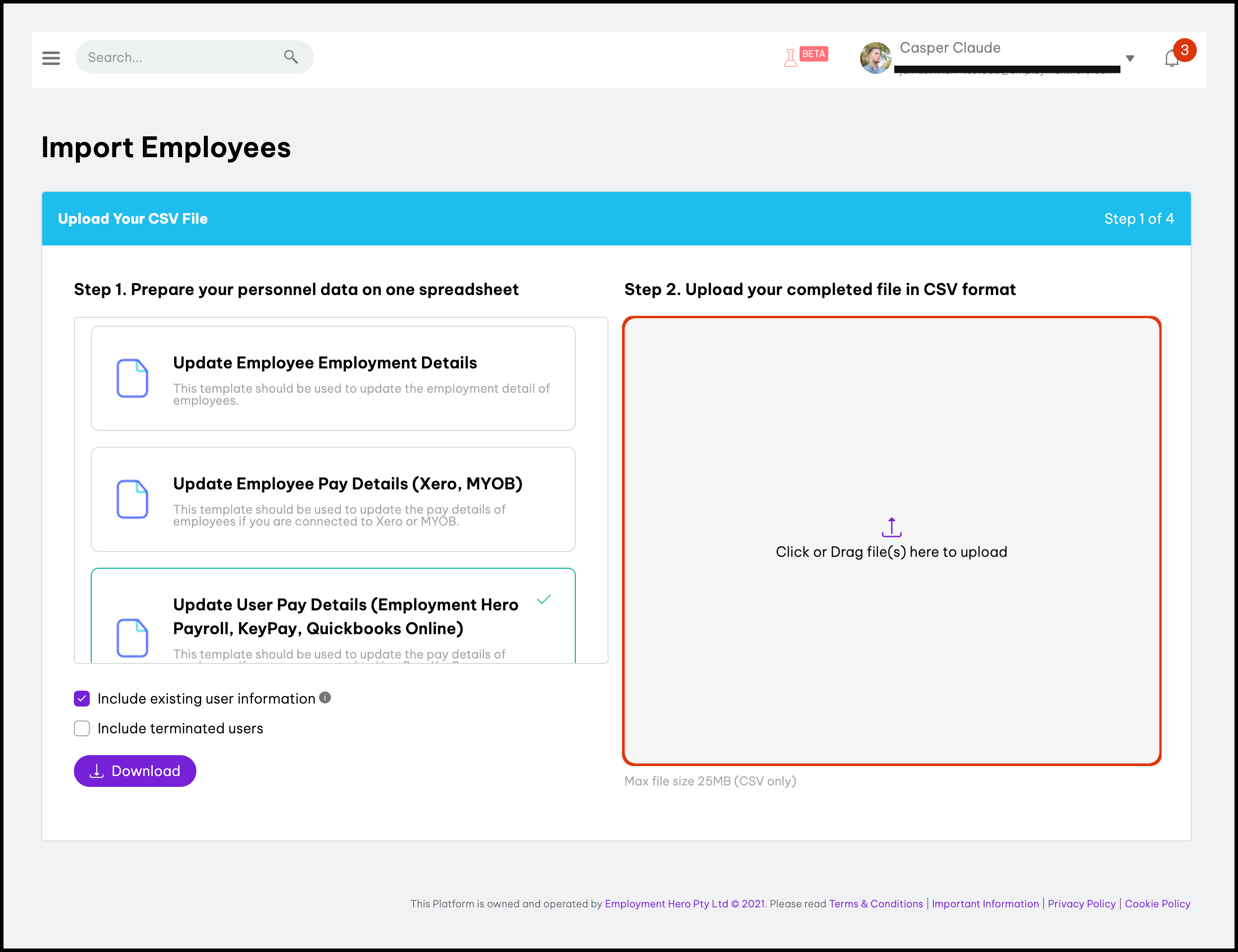 - Download the relevant Update Employees/Users Pay Details template.
