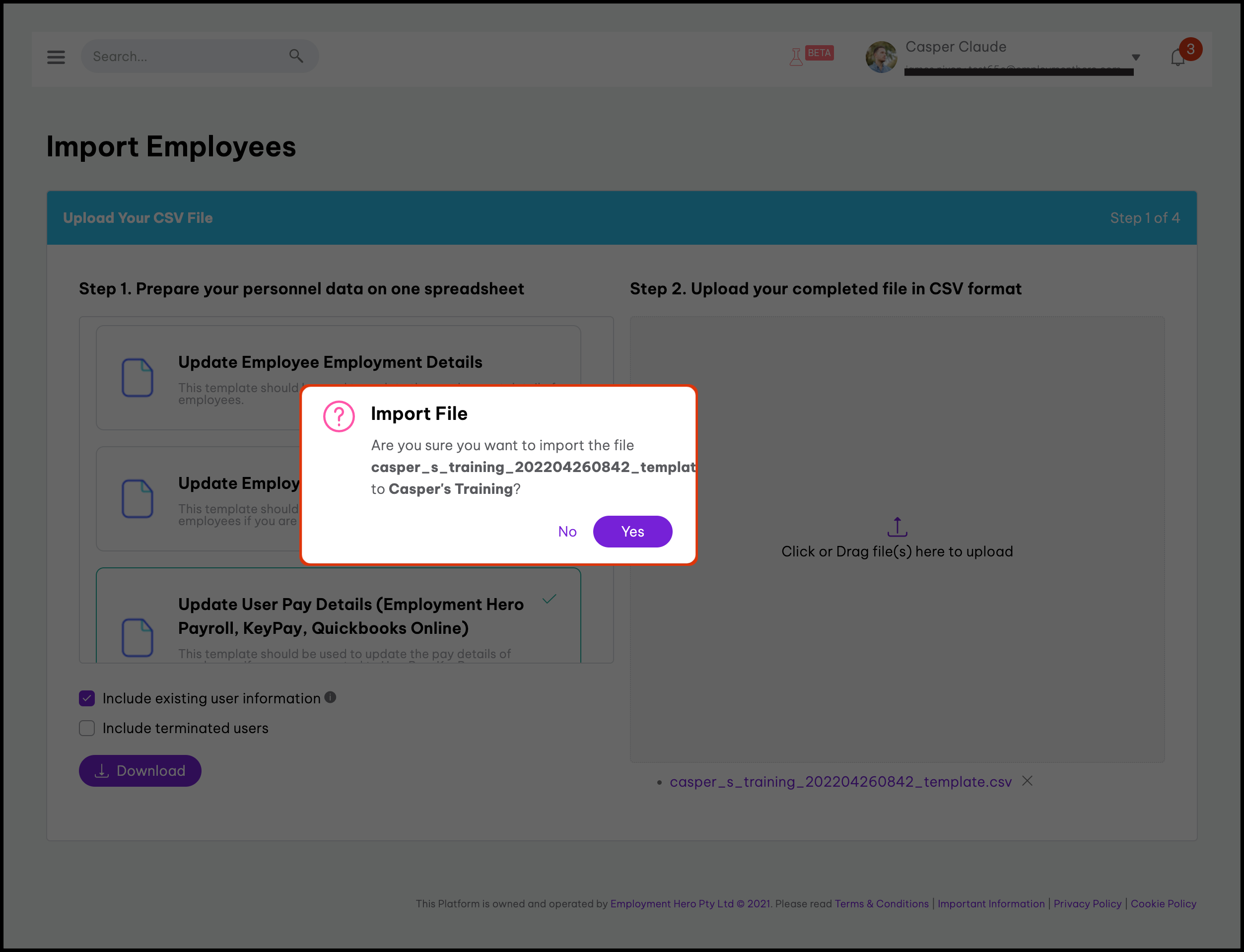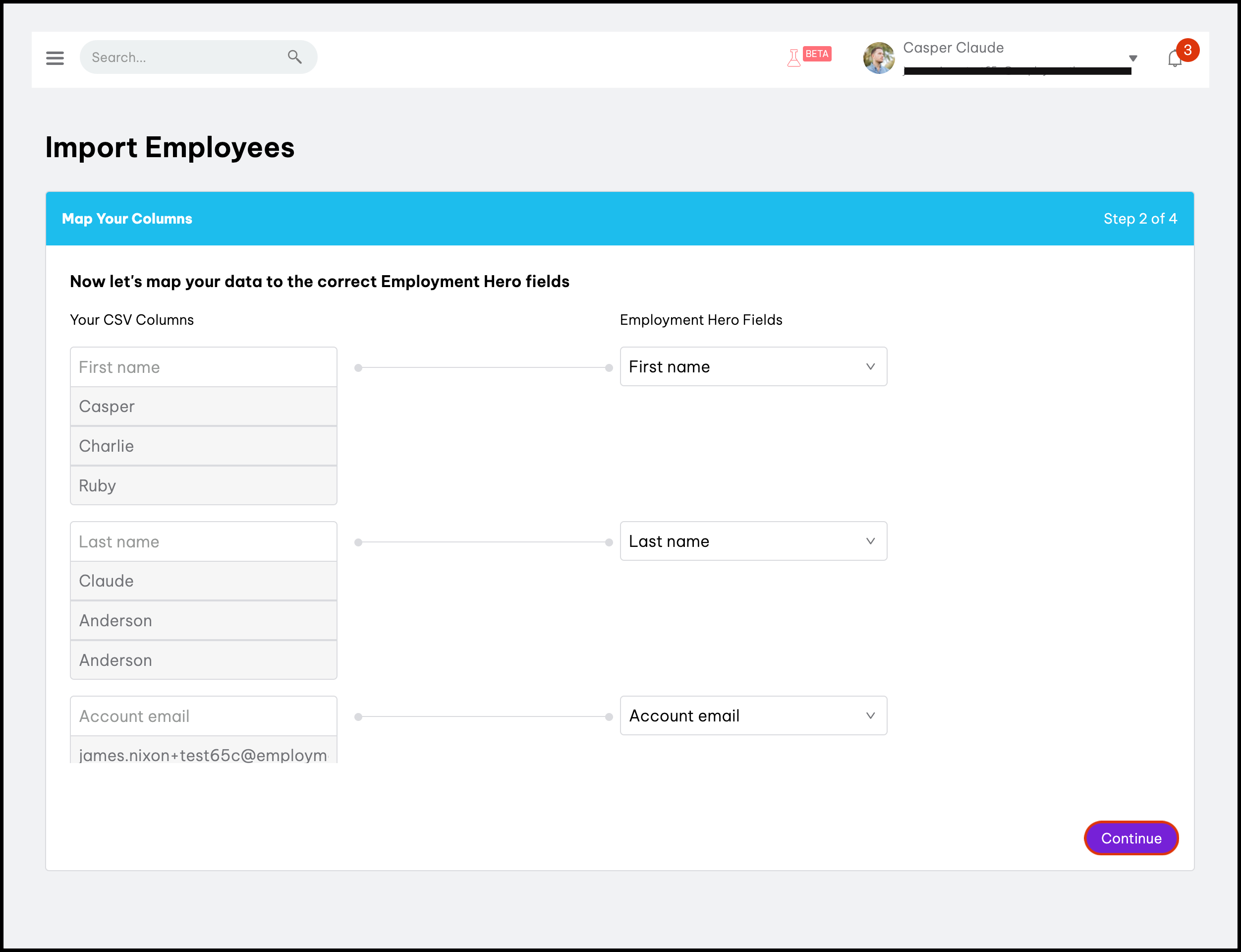 - Choose what columns in the CSV file to map to what field in the HR platform.