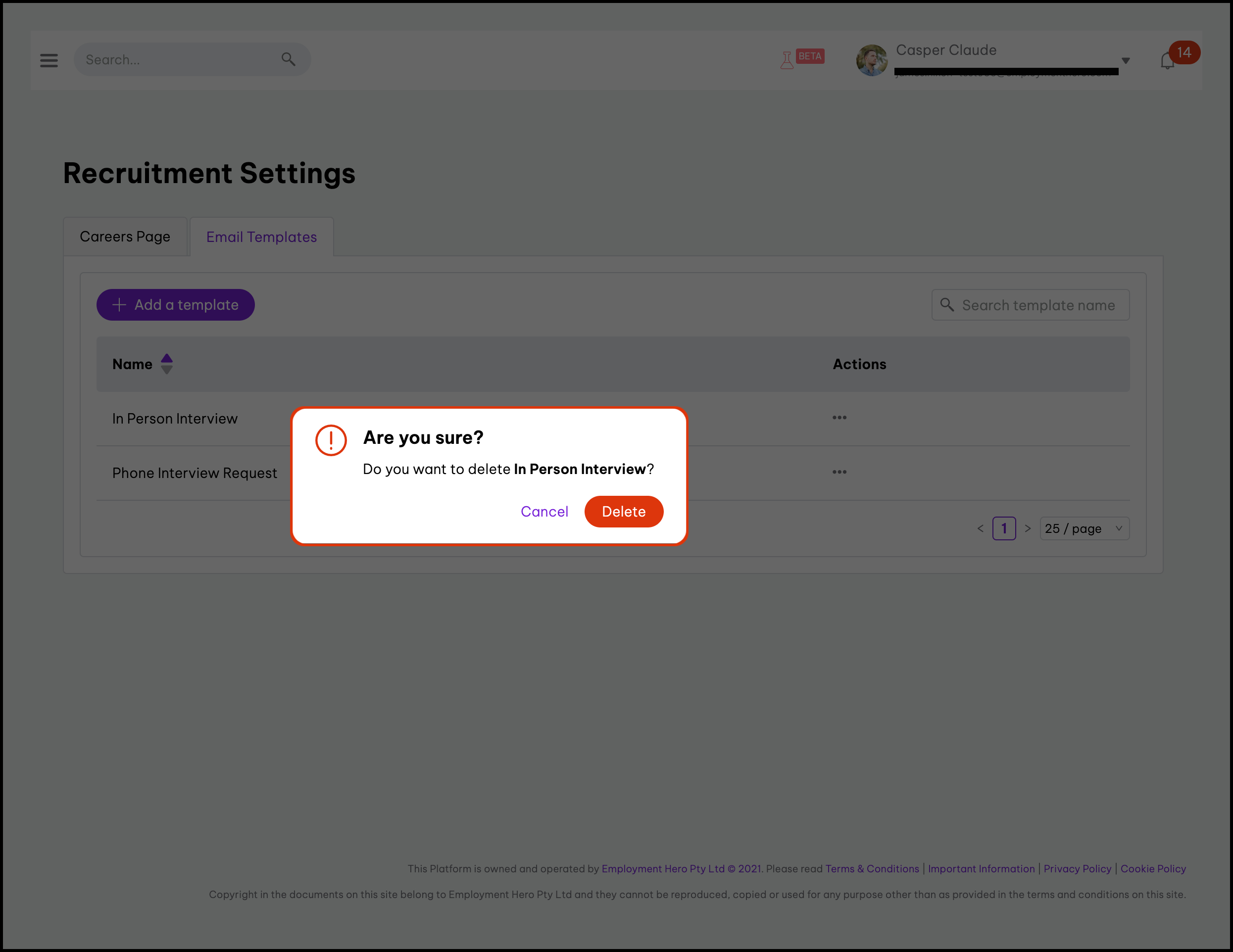 The Email Templates feature enables you to design custom recruitment email templates tailored to communicate effectively with your candidates. This feature not only allows you to craft initial outreach emails but also to update the content as recruitment strategies evolve or delete templates that are no longer relevant. Lastly, you can streamline your communication process by reusing these templates for various recruitment stages, ensuring consistency and efficiency in candidate engagement.