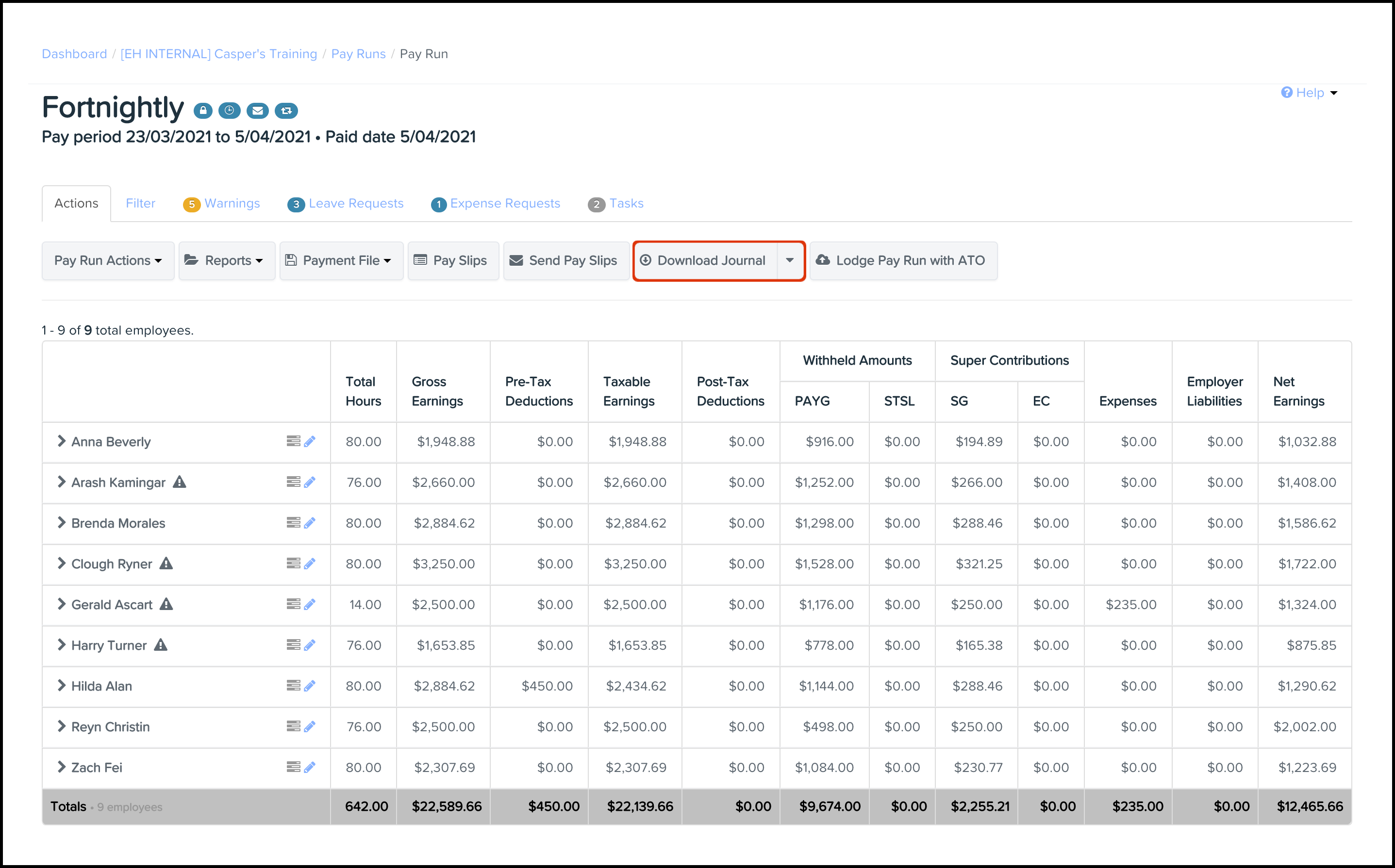 - Click the finalised pay run that needs downloading.