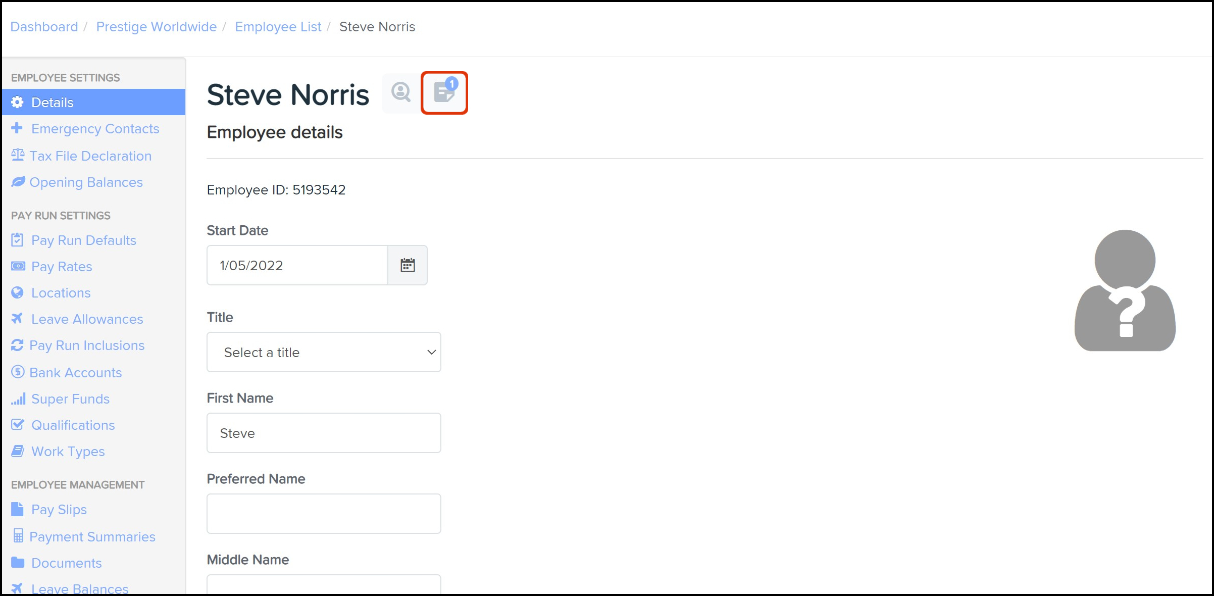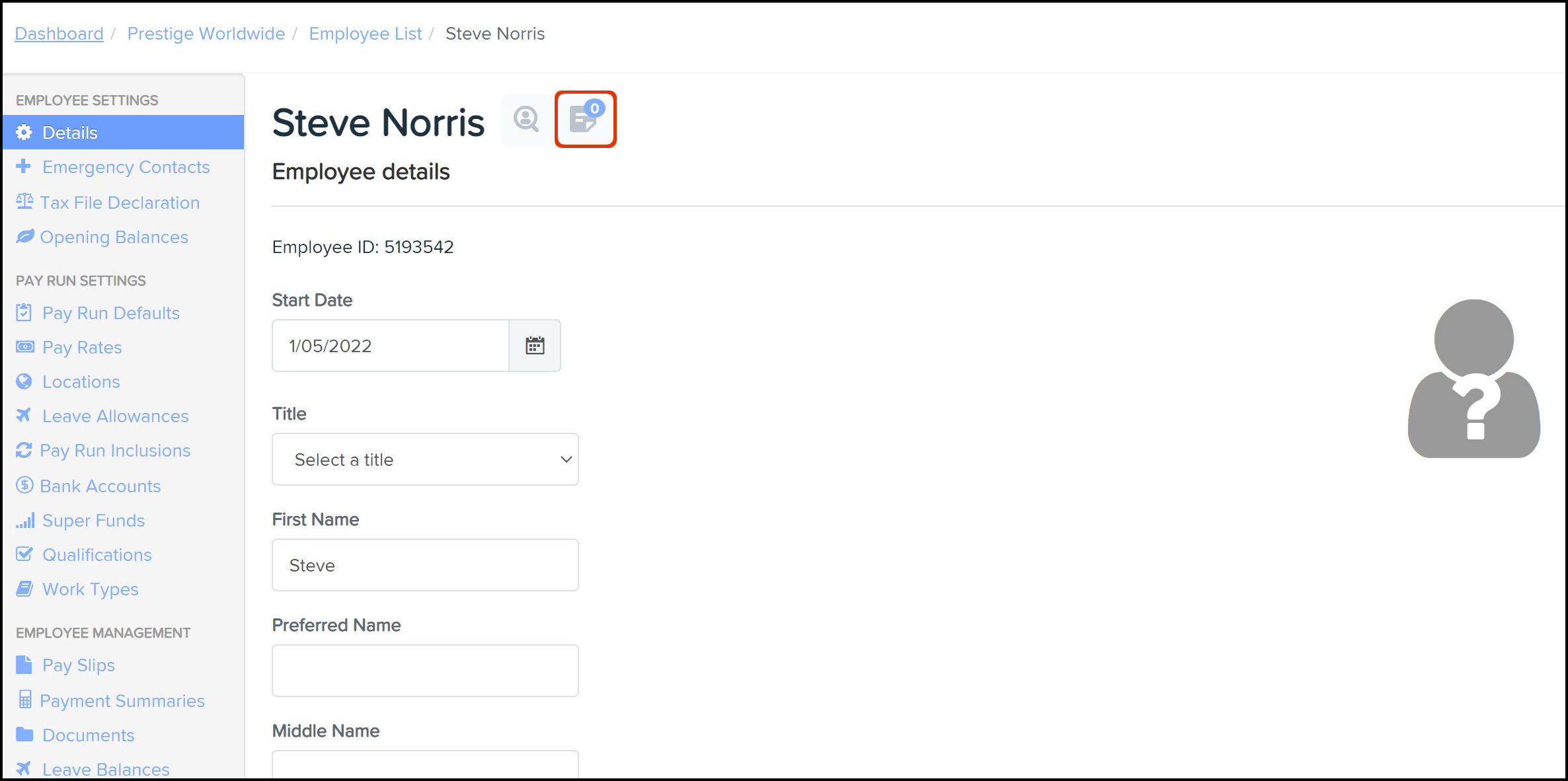 As an organisation, you many need to record a note on an employee's personnel file, so you have a list of actions that need taking in one central place. The reasons for this can vary, but an example could be a note to update the employees pay rate templates to reflect a promotion they have received.