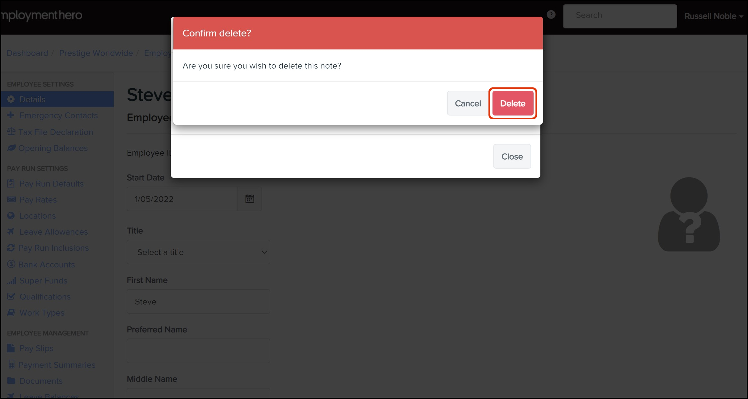 The following premise will walk you through how to delete a note in an employee's file.