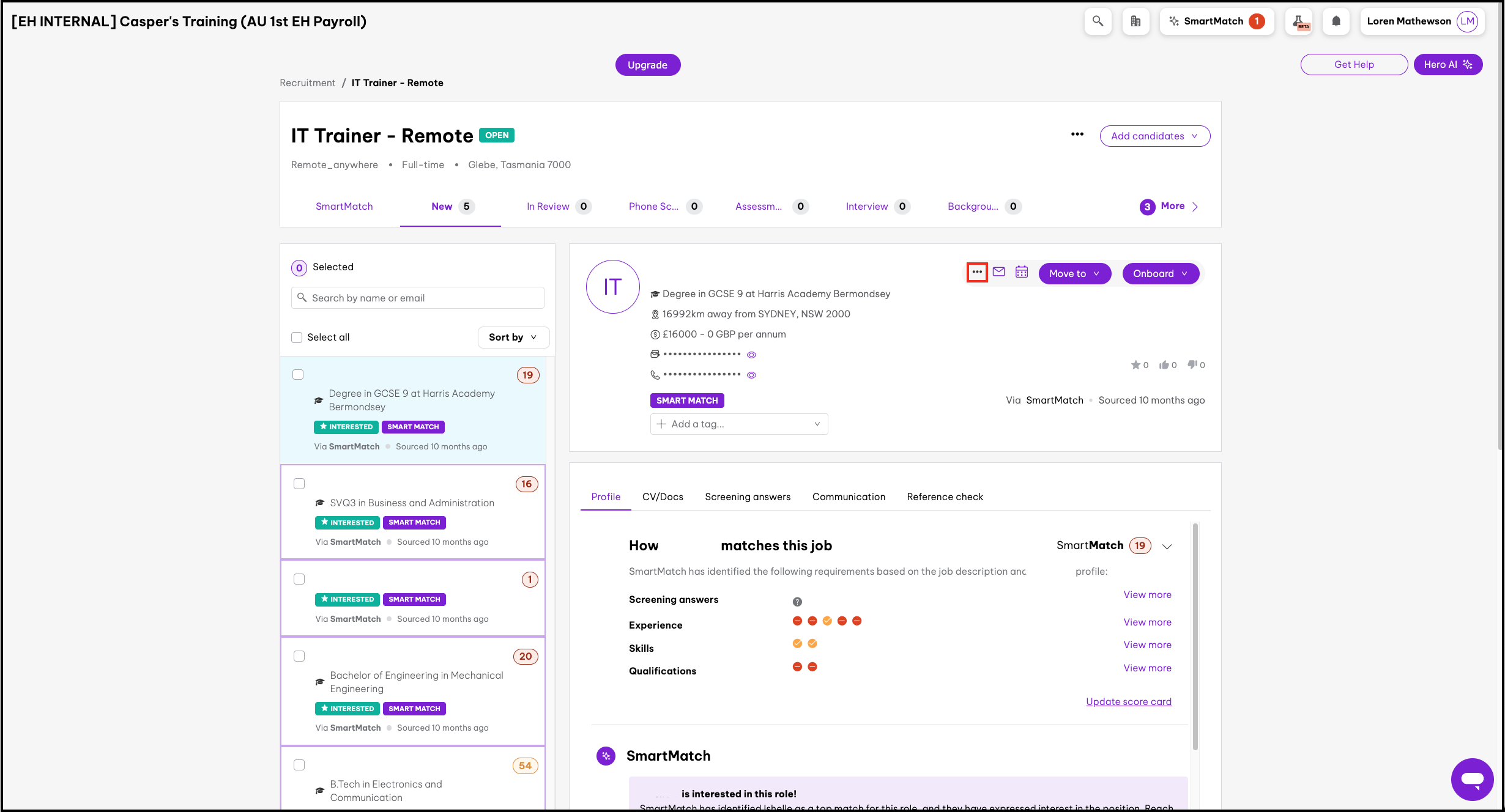 - Click the Recruitment menu on the left-hand side navigation.