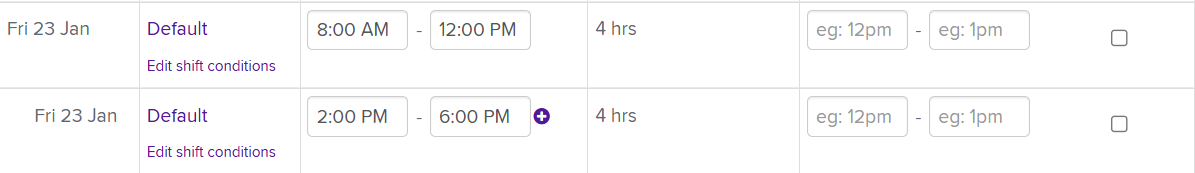 | No Minimum Shift Engagement | Choose this shift condition when minimum shift hours do not apply. |